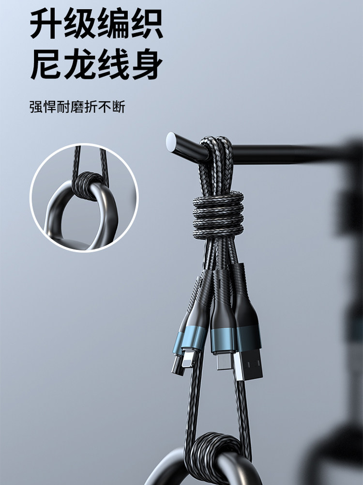 120W超级快充三合一数据线一拖三充电线器6a闪充二拖三快充多头车载冲电加长2米适用苹果华为小荣耀手机线