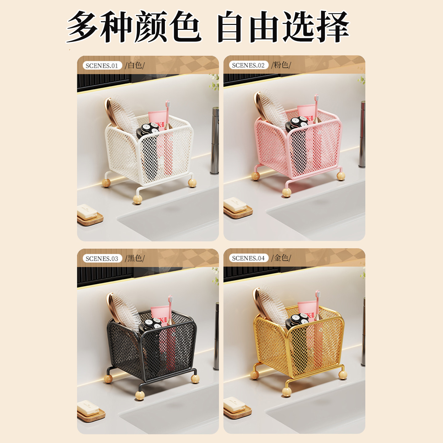 浴室柜台面放梳子收纳架卫生间置物架牙刷牙膏架免打孔多功能架子