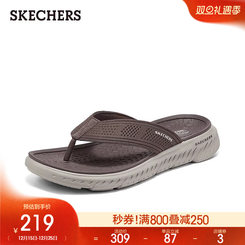 Skechers斯凯奇男鞋2025夏季新款一脚蹬休闲拖鞋舒适外穿人字拖