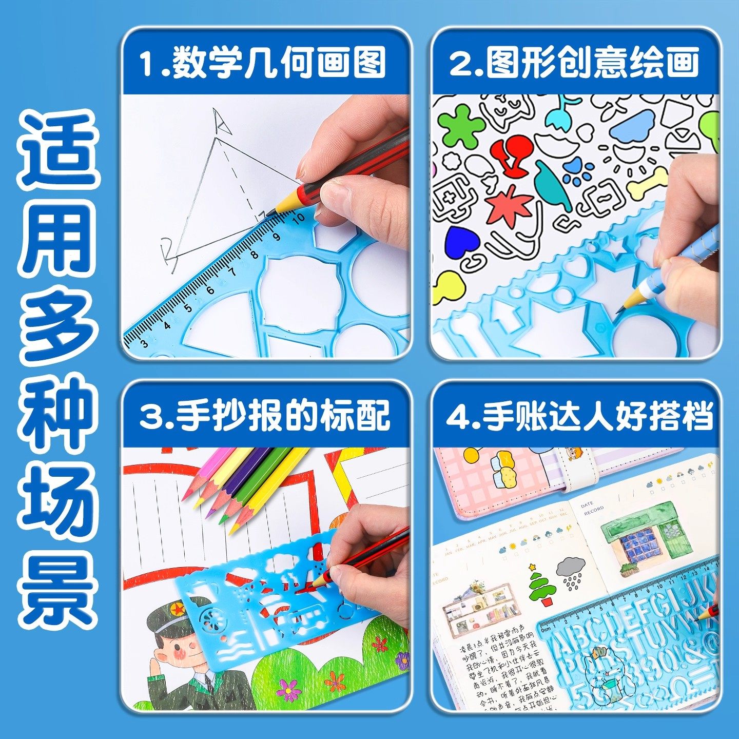 多功能尺子小学生万花尺手抄报模板专用百变工具套装一年级初中绘