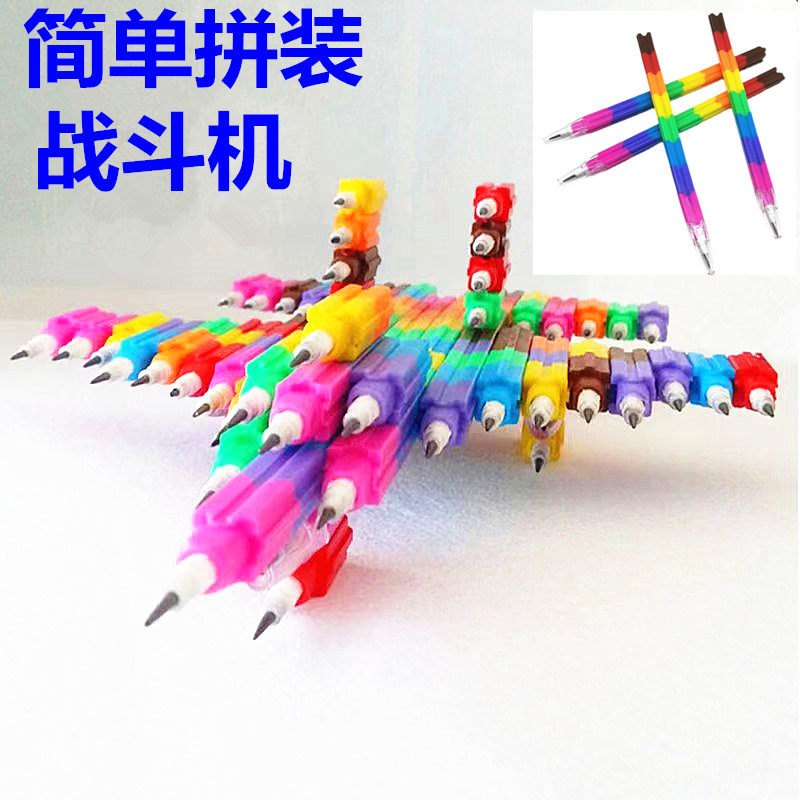 怀旧积木拼装子弹笔儿时下蛋导弹笔变形笔节节飞机笔拼图铅笔玩具