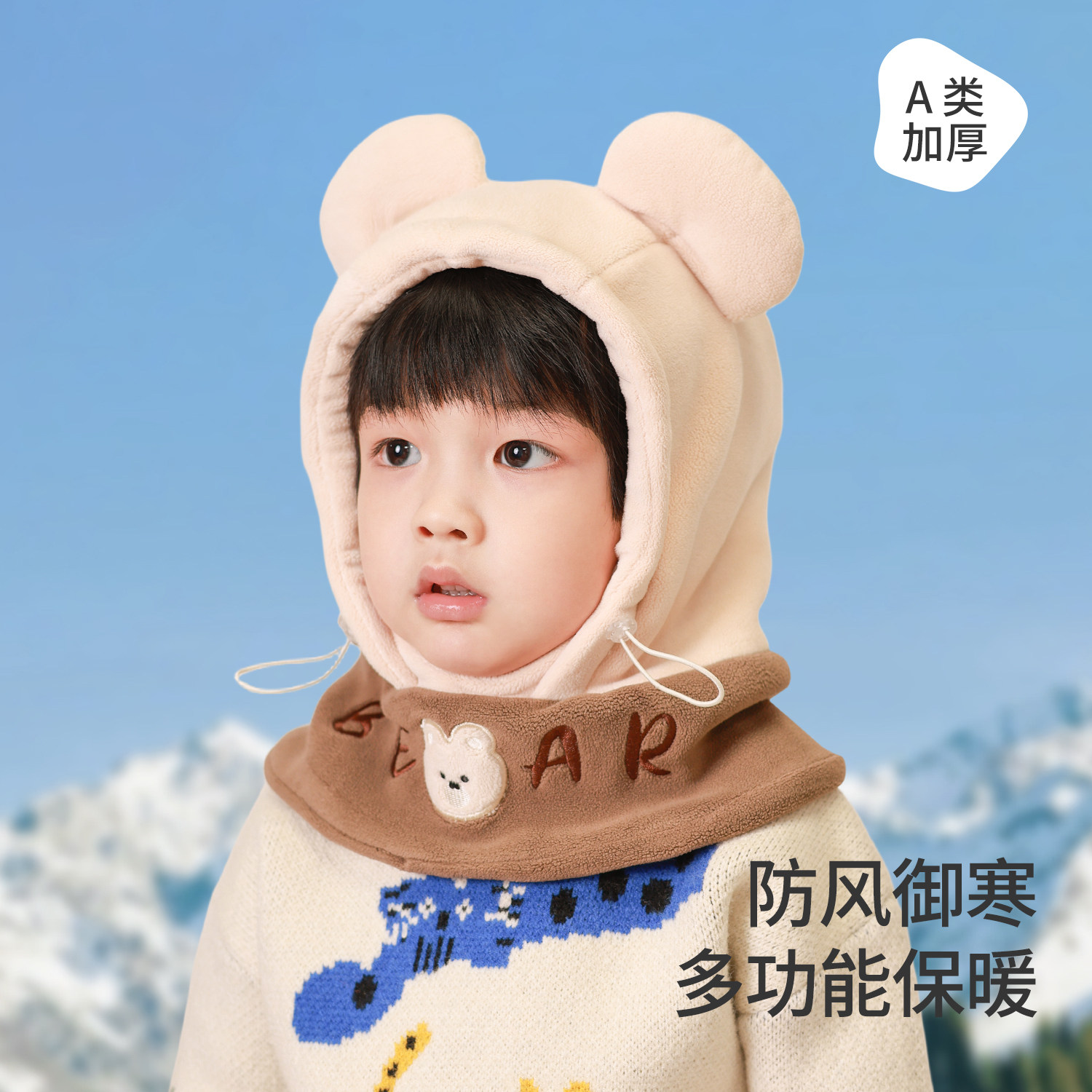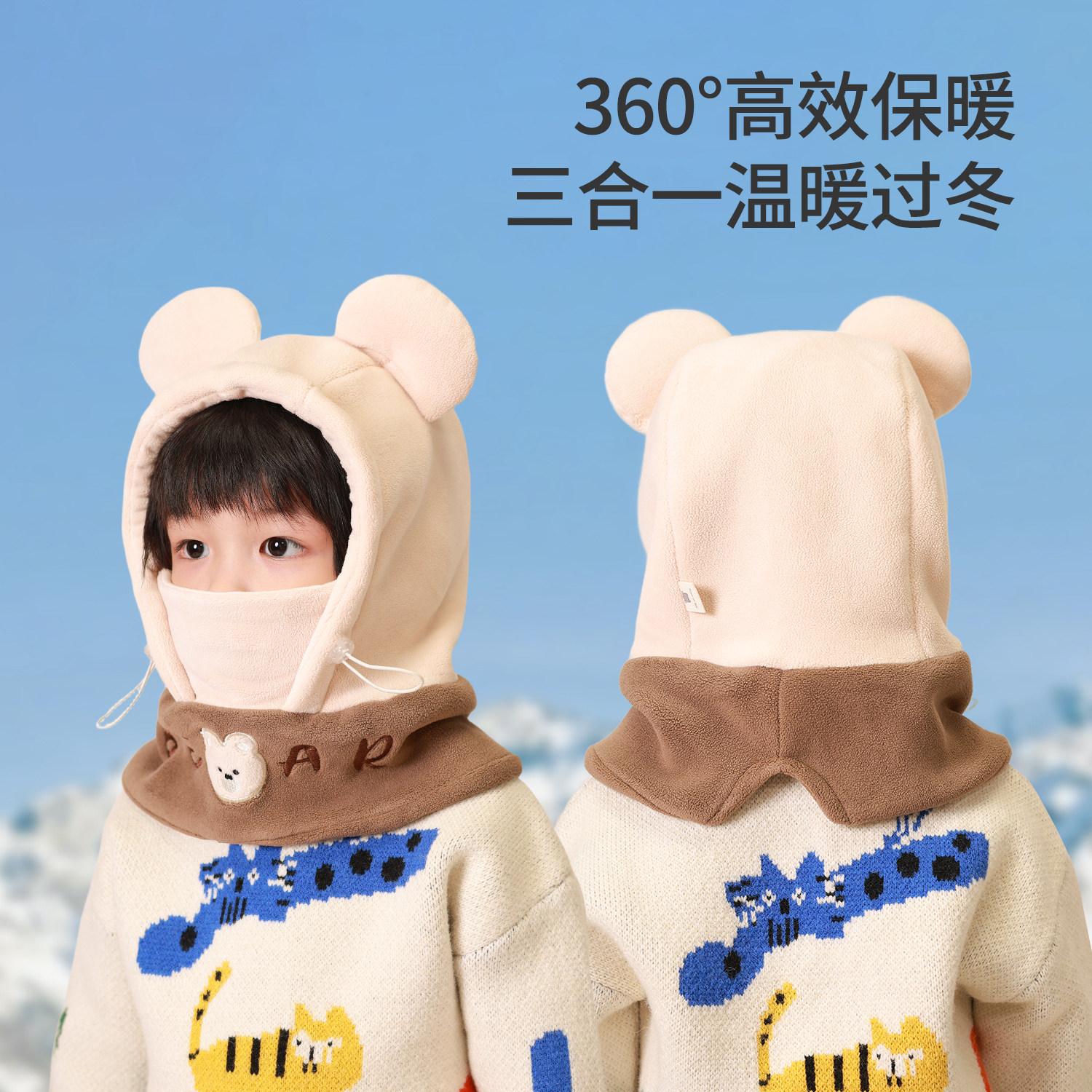 儿童帽子秋冬季防风面罩男童女童护耳保暖宝宝户外骑行围巾一体帽