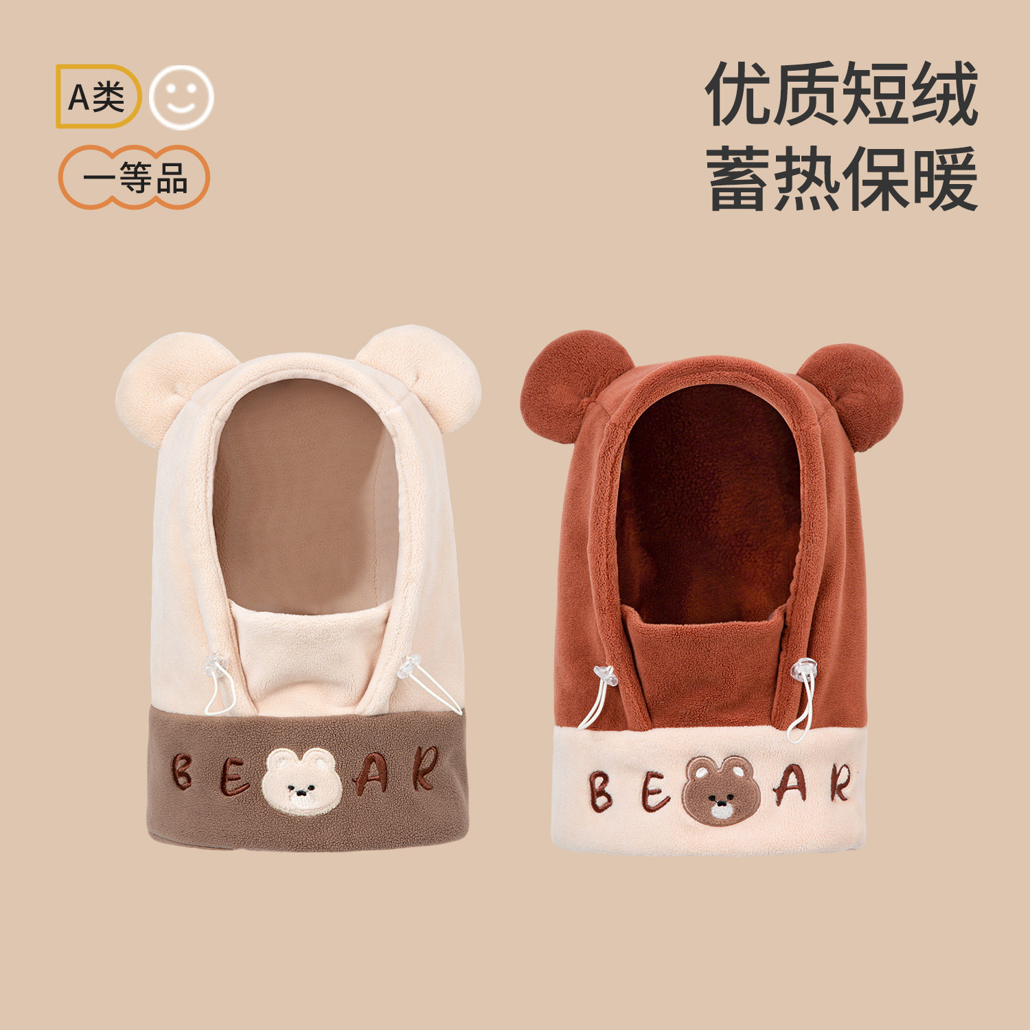 尼多熊婴儿帽子秋围脖一体宝宝毛绒帽防风护耳帽冬季保暖婴幼儿帽