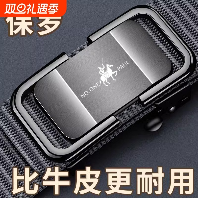 保罗男士皮带自动扣松紧腰带耐用透气工装休闲潮裤带学生军训帆布