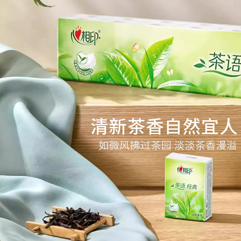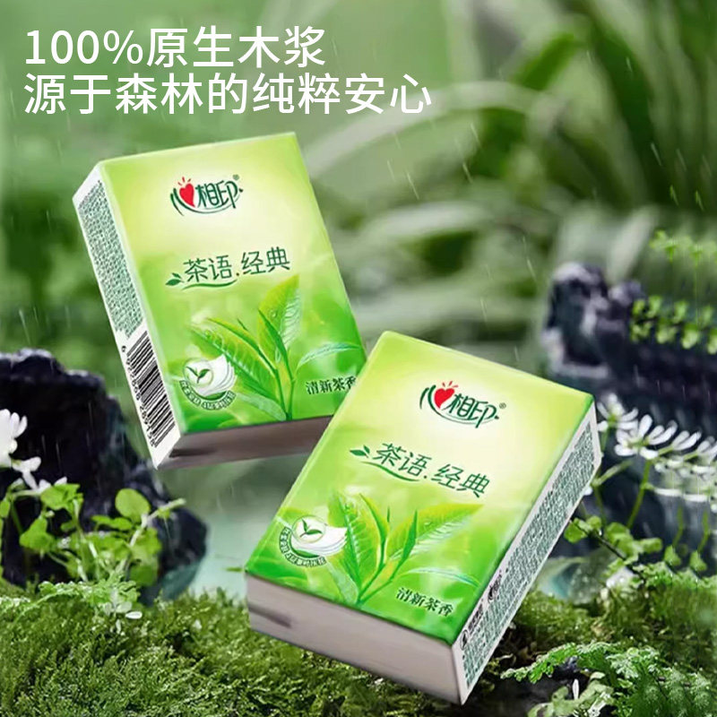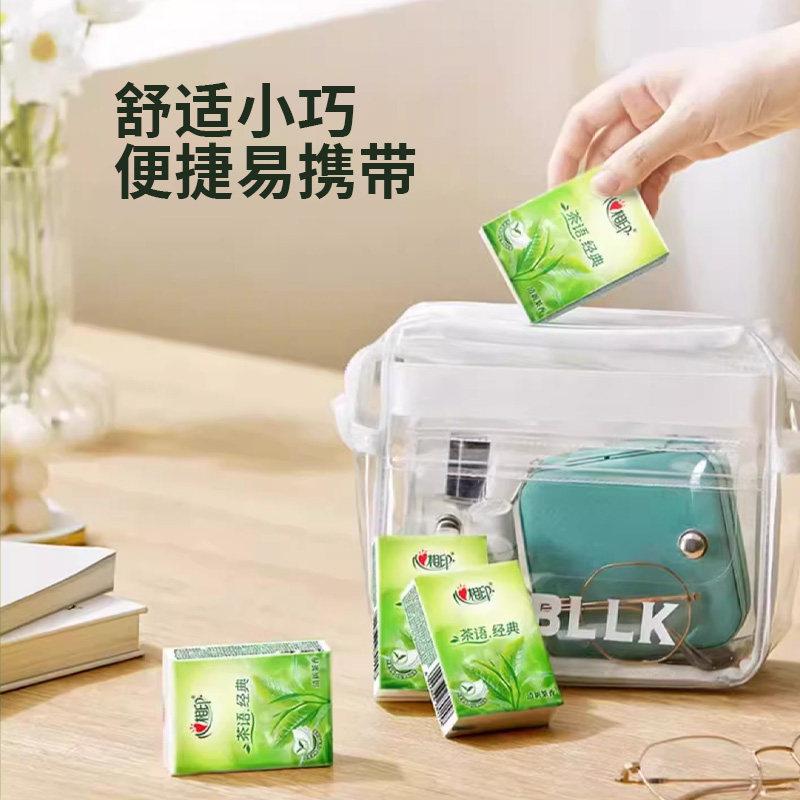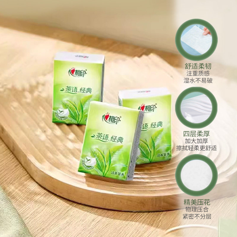 心相印手帕纸茶语经典四层纸擦手纸面巾纸卫生纸巾便携餐巾纸家用