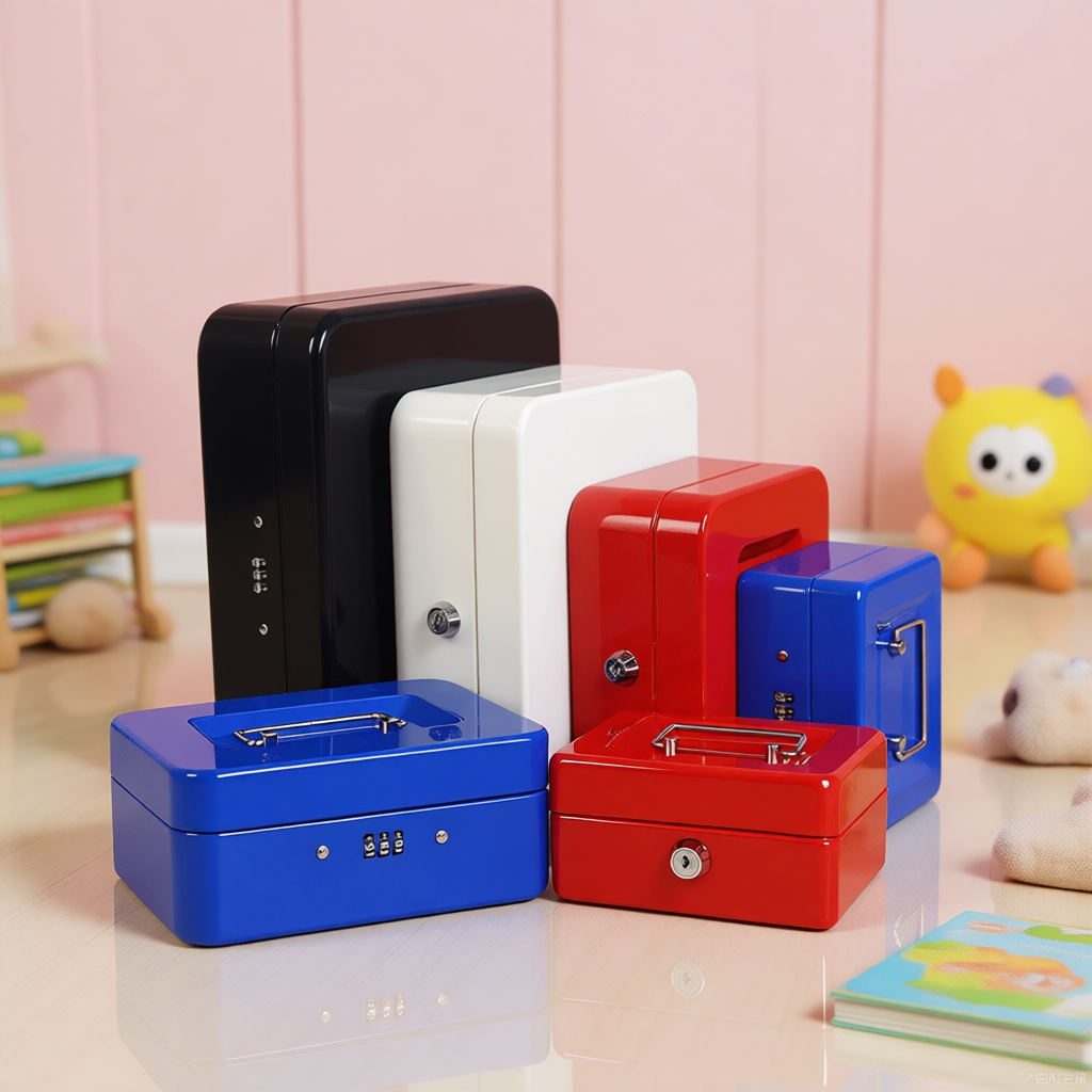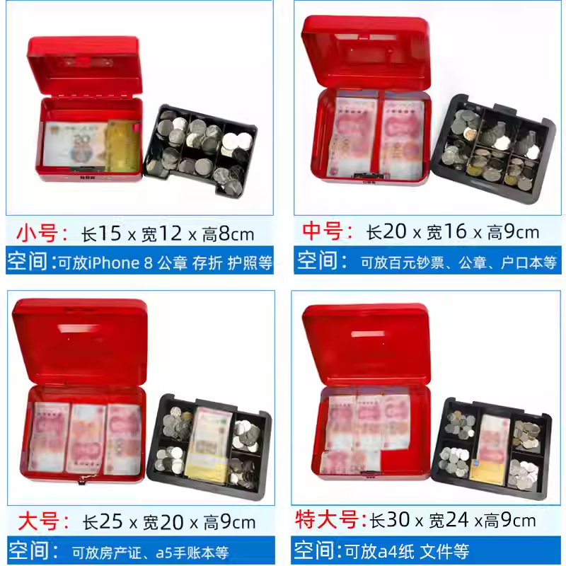 钱箱铁盒子带锁手提小箱子证件隐私储物盒存钱罐收纳箱密码小盒子