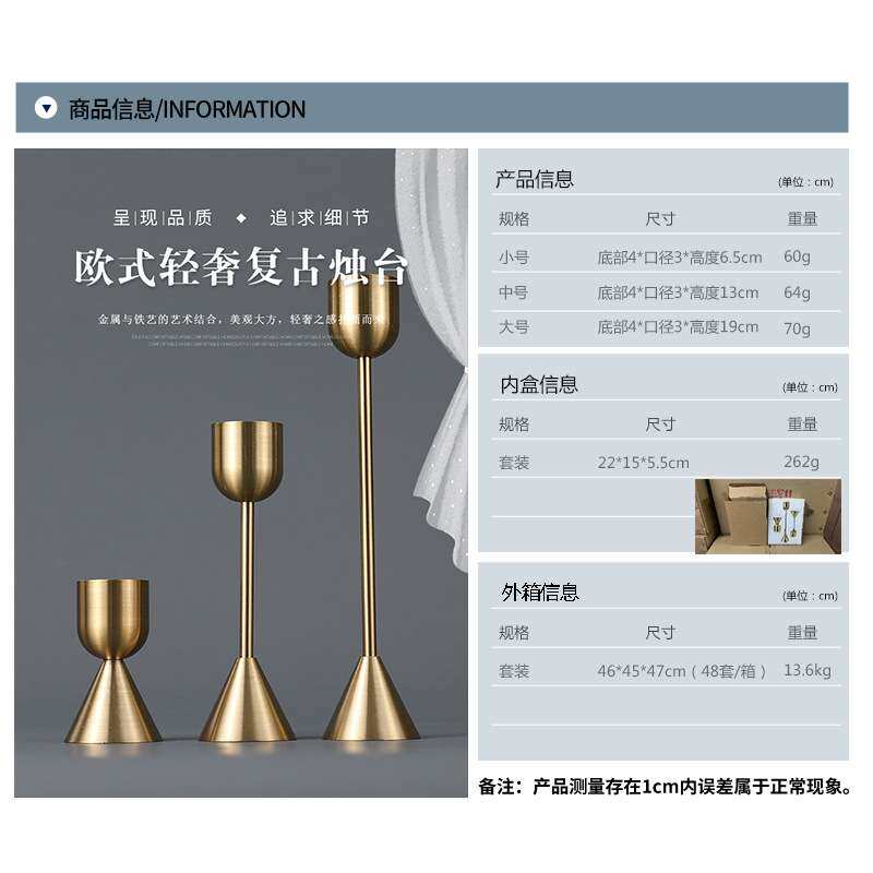 跨境欧式烛台摆件餐桌客厅样板间装饰工艺品金属铁艺蜡烛台圣诞节