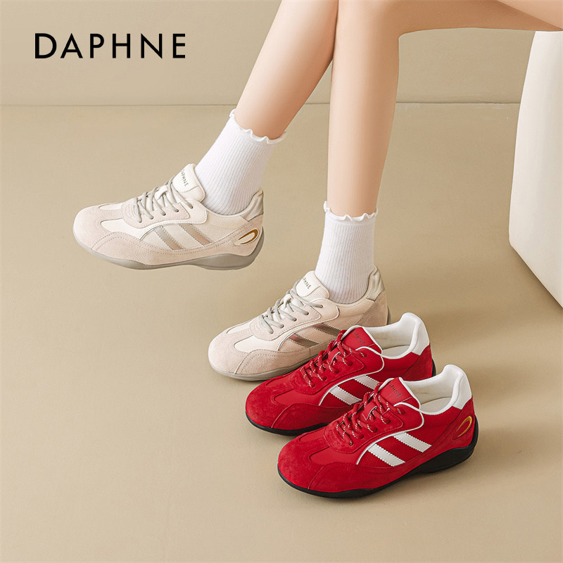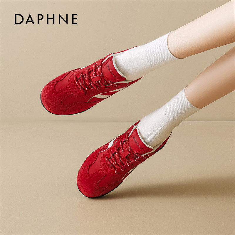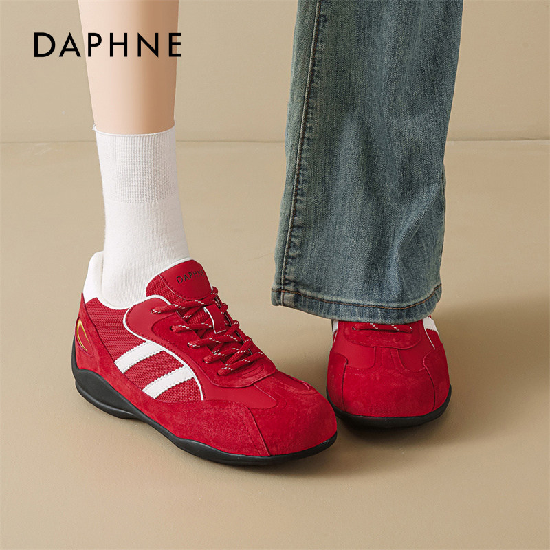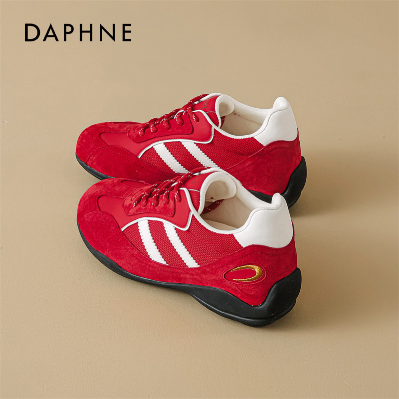 达芙妮红色德训鞋女2026新款春季内增高婚鞋厚底休闲阿运动甘女鞋
