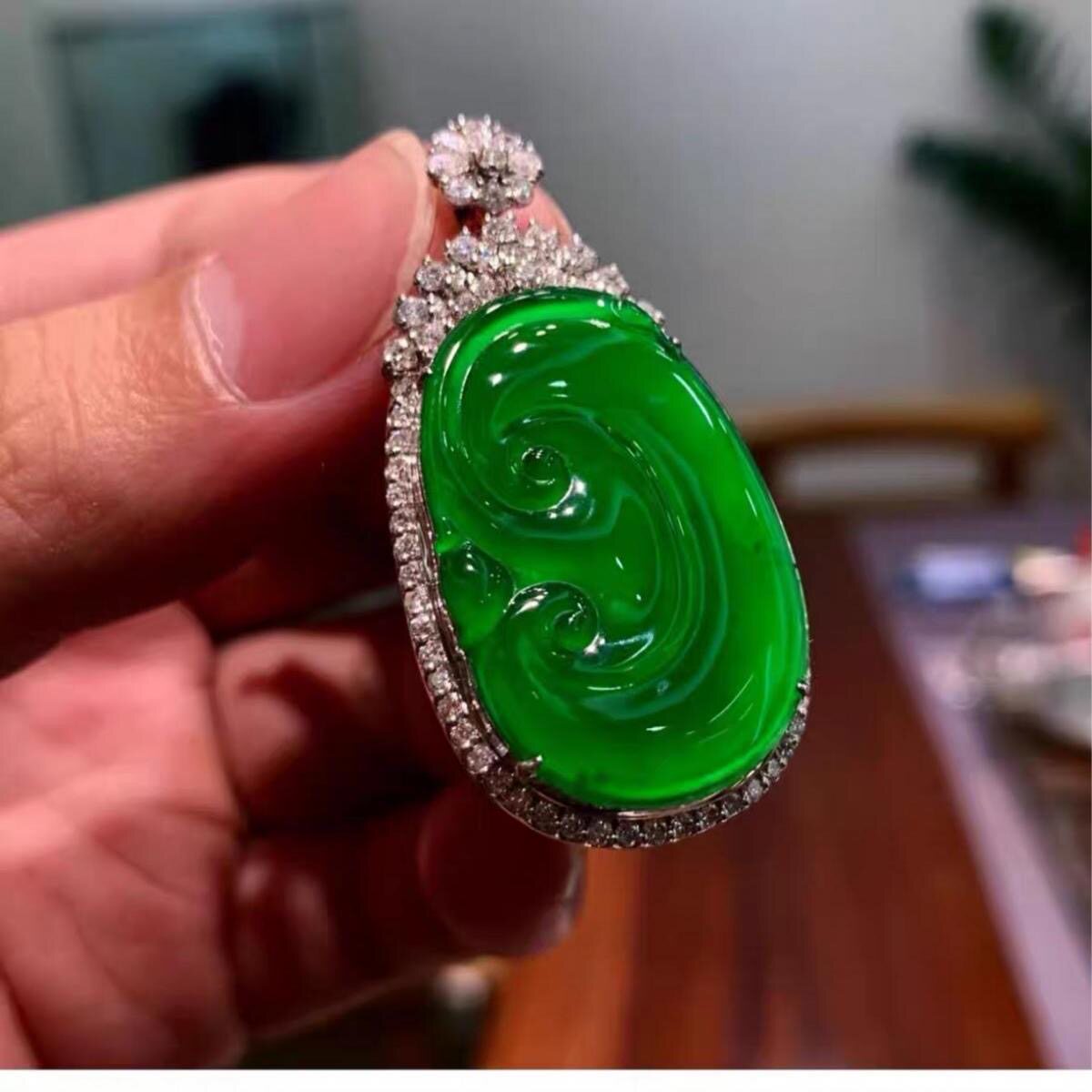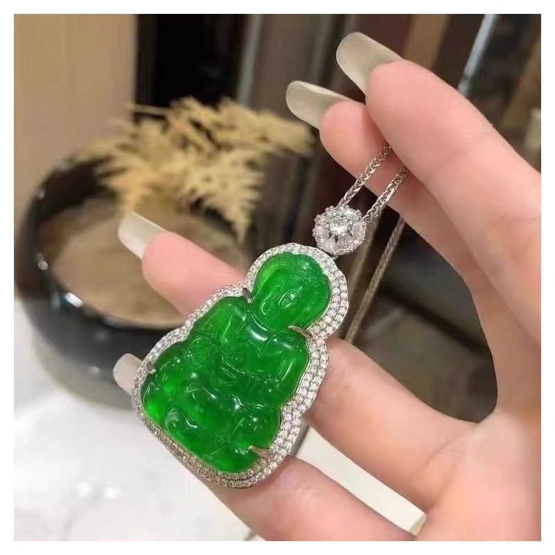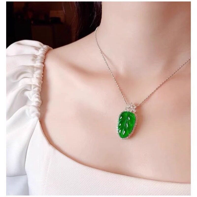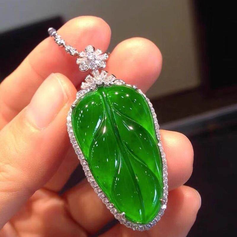 缅甸翡翠色如意叶子高冰种辣阳绿仿A货玉髓吊坠观音佛公弥勒佛