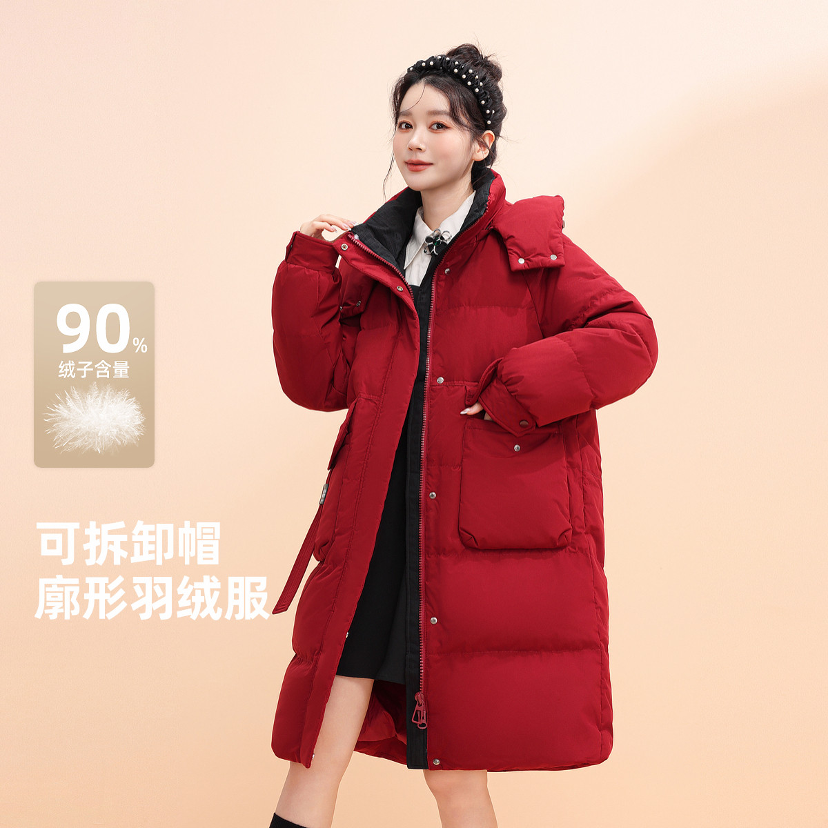 鸭鸭中戏pro羽绒服女冬季反季中长款羽绒服过膝加厚95绒波兰鸭绒J