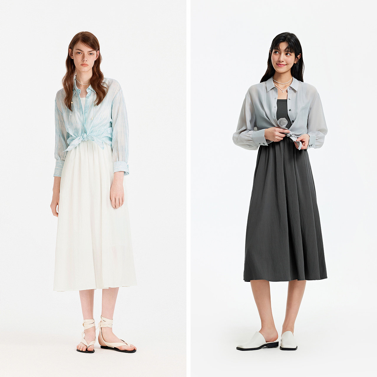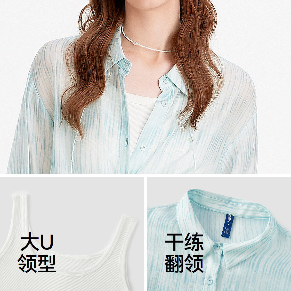 森马连衣裙女夏季U领吊带裙肌理翻领衬衫通勤简约风松弛感两件套