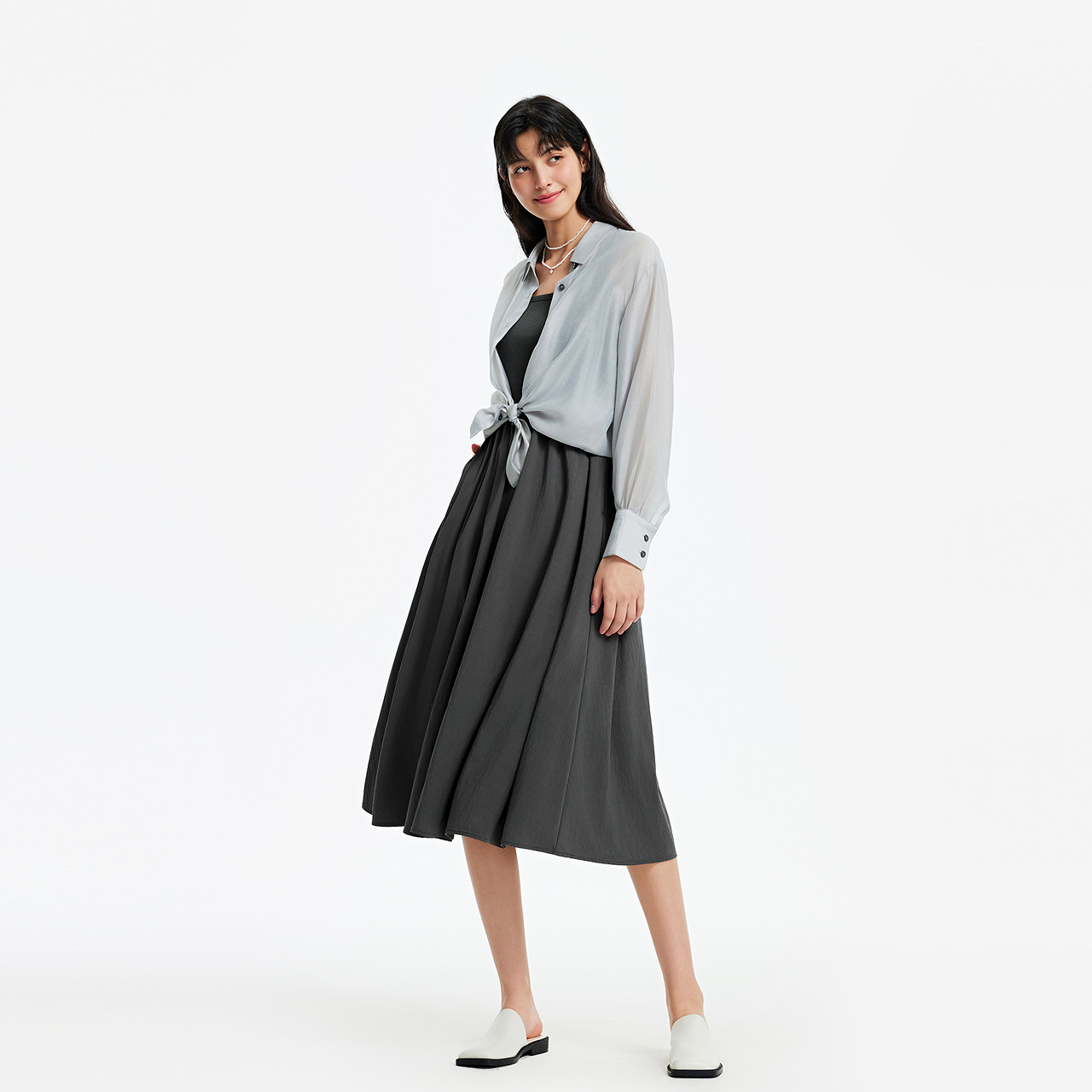 大U领凸显锁骨 微皱肌理简约松弛感