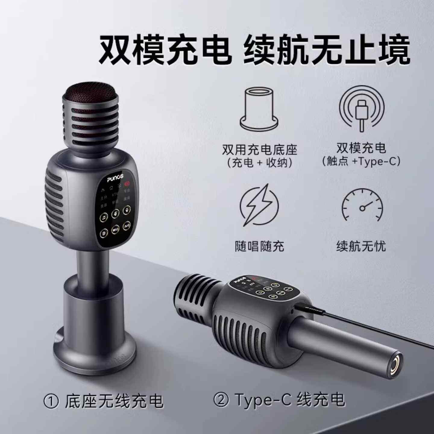 博浪沙Punos话筒音响一体无线麦克风户外家庭会议ktv蓝牙直播声卡