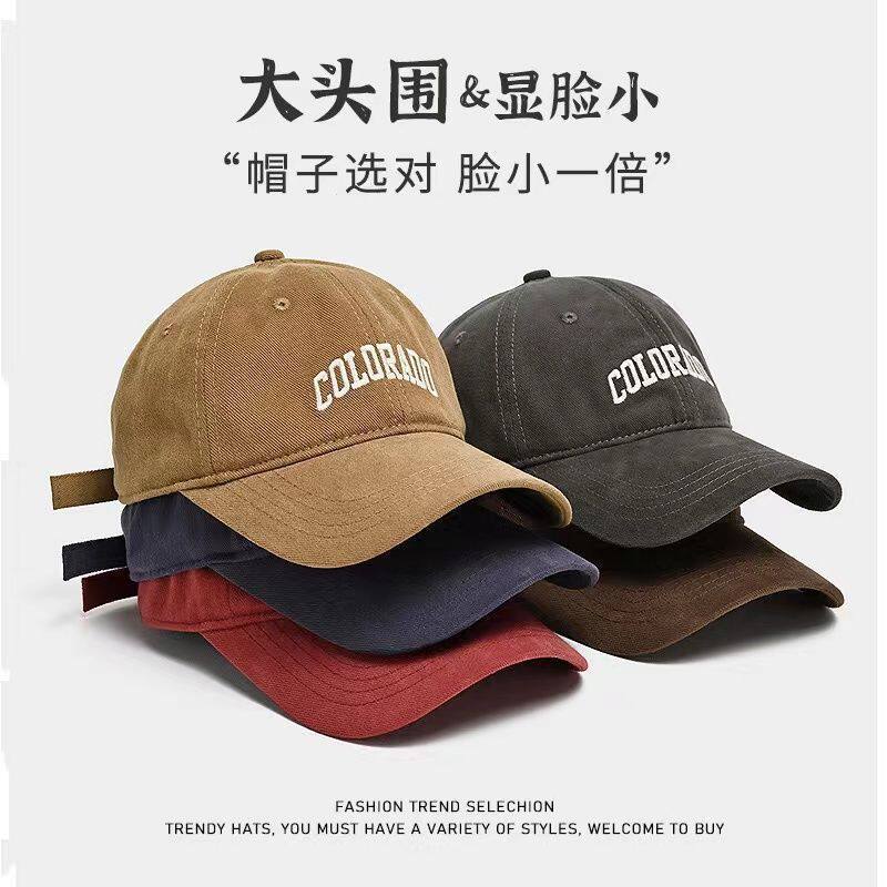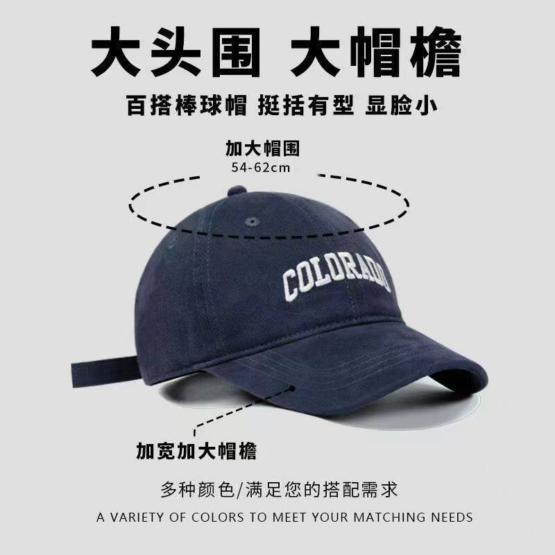 美式复古字母灰色棒球帽女高级感宽檐大头围显脸小百搭鸭舌帽子男