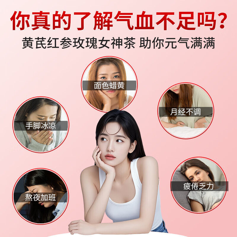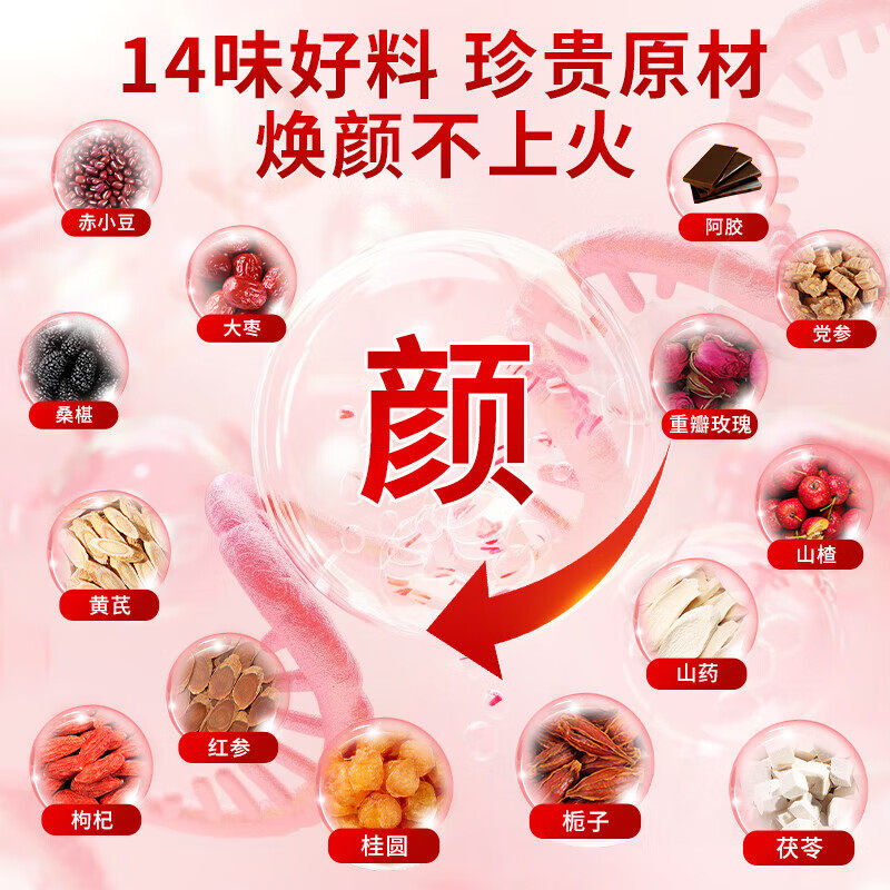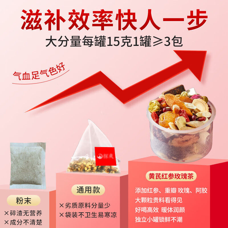 九芝堂黄芪红参玫瑰茶女生补气养血阿胶调理气血不足养生正品茯苓