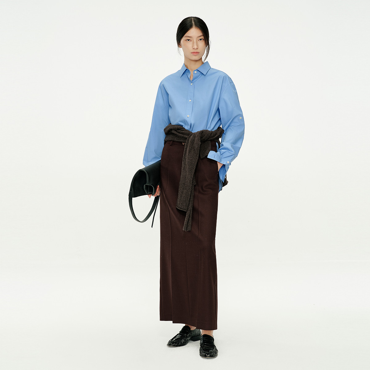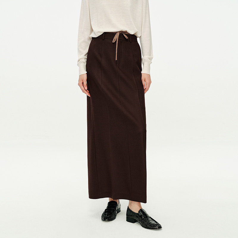[罗予彤同款]MESUX米岫撞色设计垂顺抗皱H型系带半身裙MNWUS402