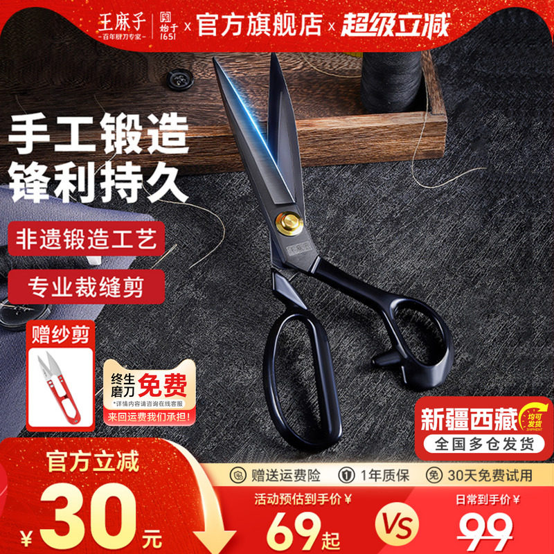 王麻子裁缝剪刀裁布缝纫专用剪专业裁剪服装布料衣服大剪子工业用