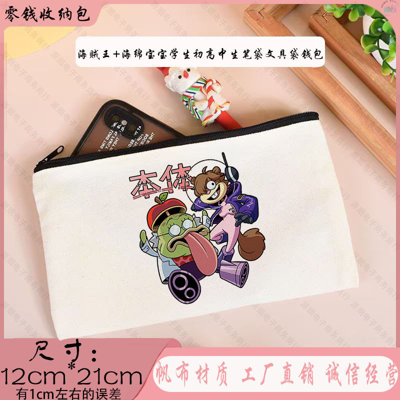 海贼王-海绵宝宝卡通动漫学生便携帆布笔袋初高中生文具袋ins钱包