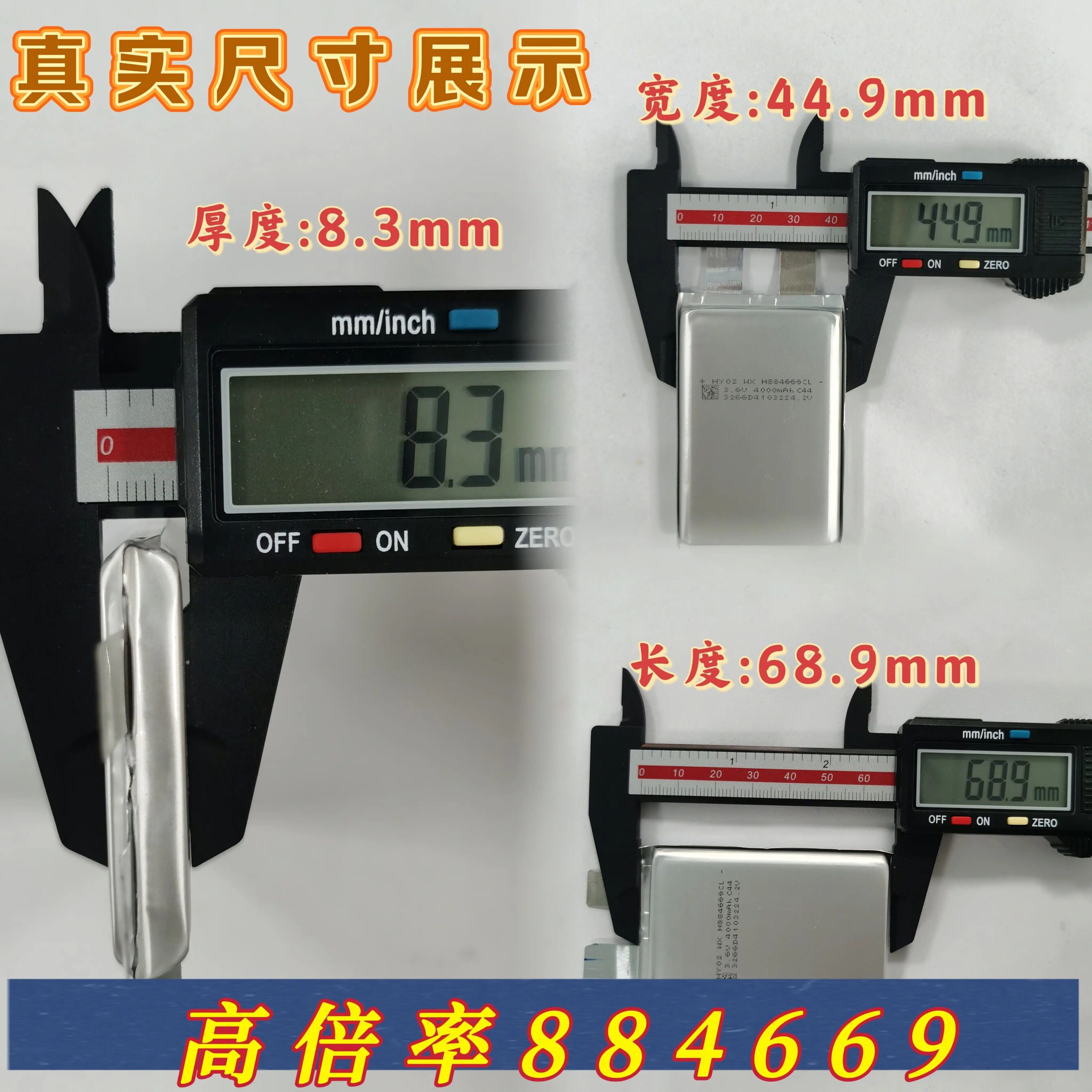 3.6V快充电池高倍率电芯884669 3850mah适用无人机扫地机电动工具