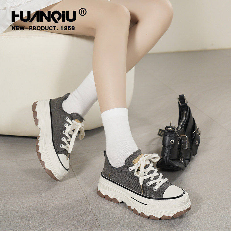 环球做旧港风帆布鞋女2026春季新款松糕厚底增高女鞋运动休闲板鞋