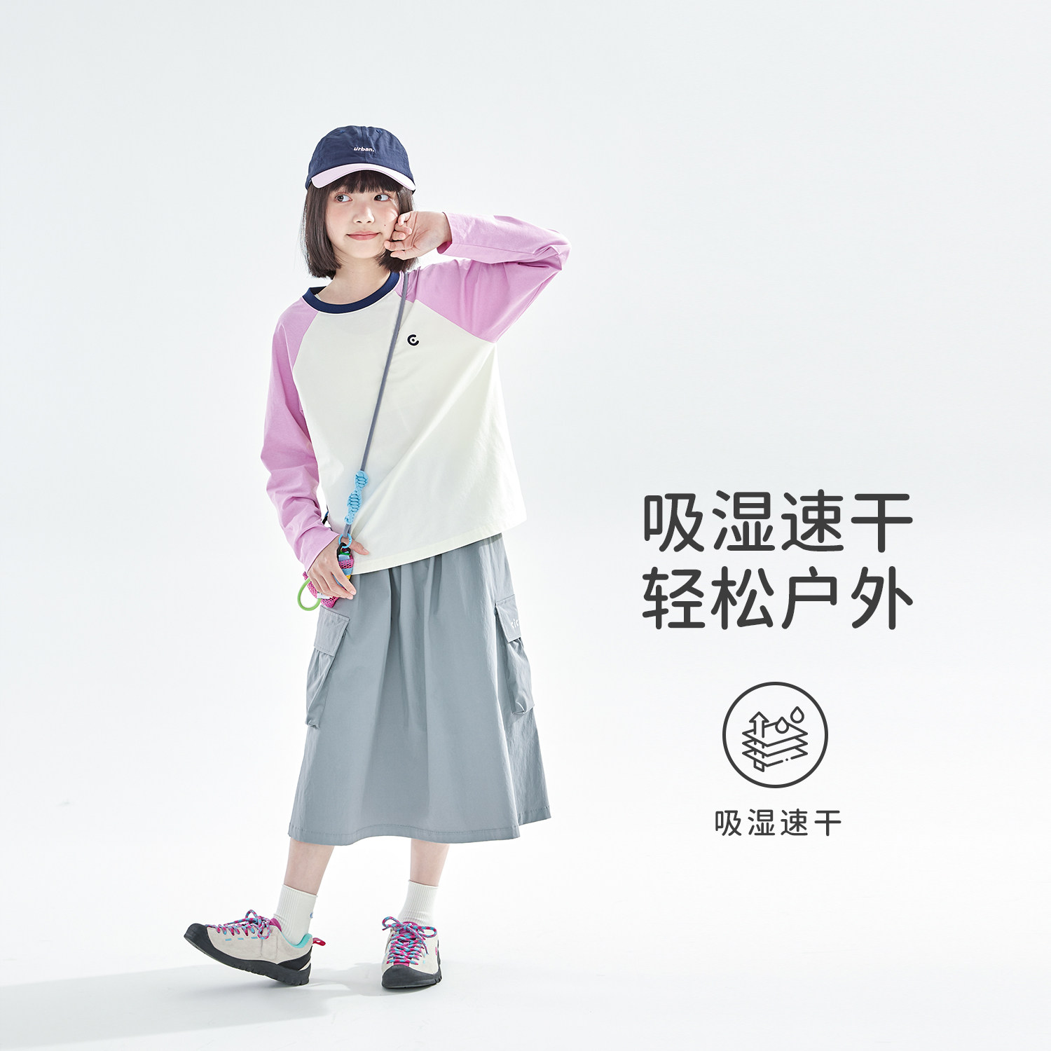 cicochild26年春季新款亲子中大女童速干工装半裙四面舒弹A字裙