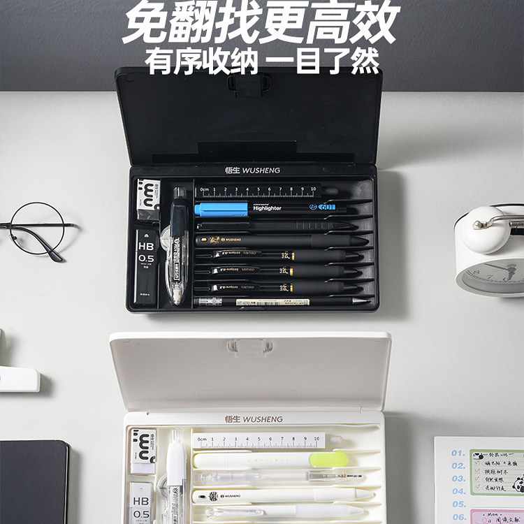 悟生学霸效率笔盒多功能黑科技文具盒男女孩款高颜值简约网红爆款大容量高级笔袋学生带文具收纳盒小学生