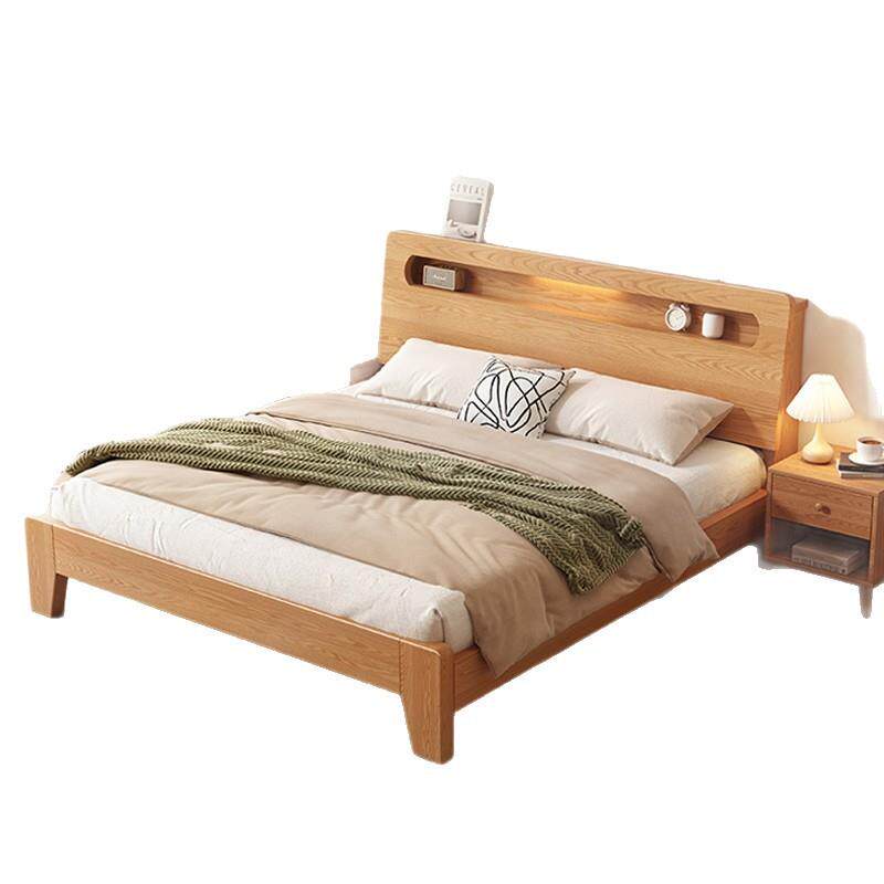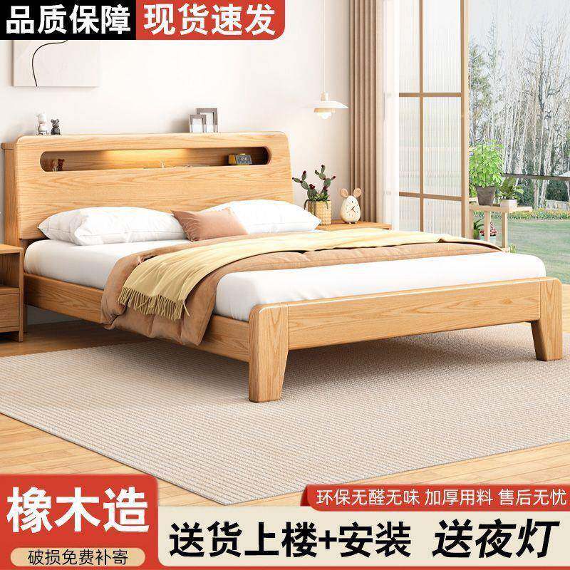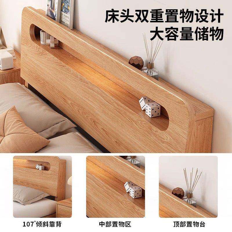 床实木床简约1.8米双人床卧室1.5米橡木储物出租房小户型静音床