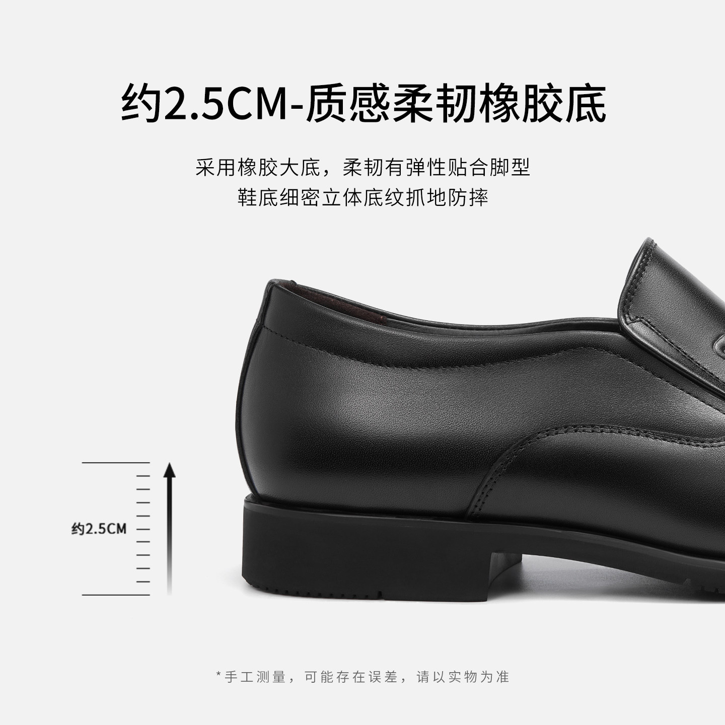MRA方头乐福鞋男款厚底增高英伦雅痞商务通勤一脚蹬黑色休闲皮鞋