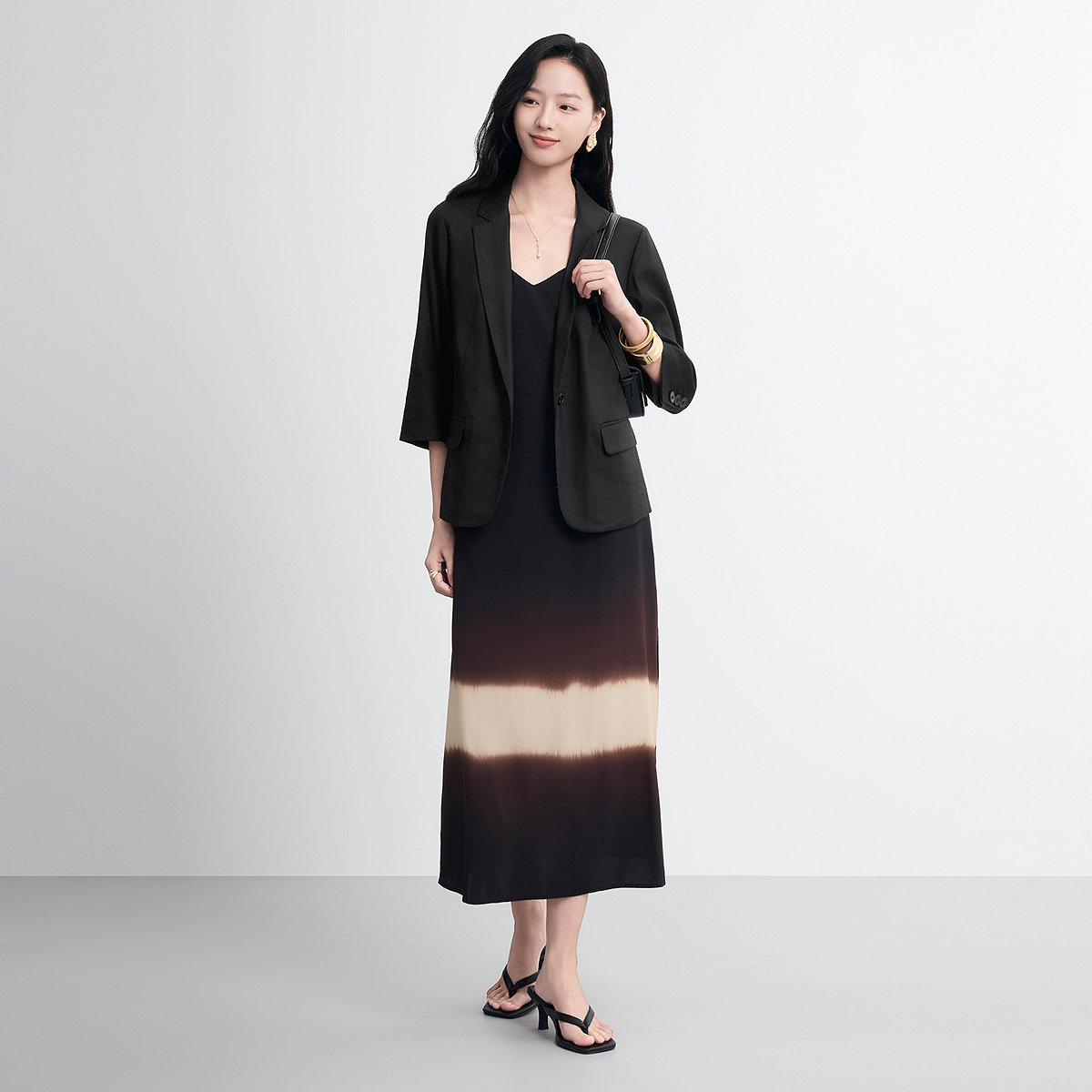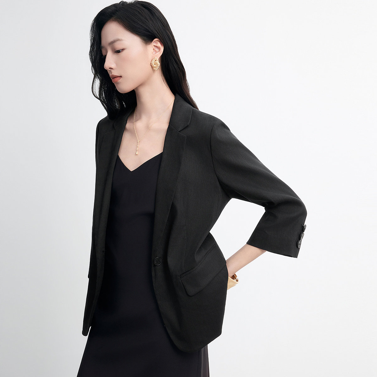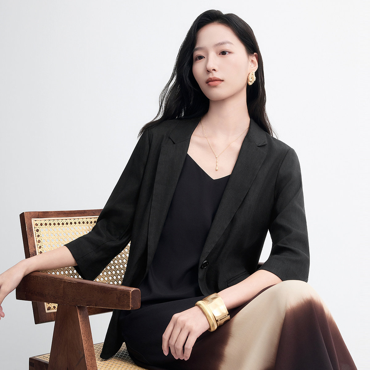 FINITY菲妮迪亚麻短外套2026年春季新款西装领优雅通勤职业上衣女