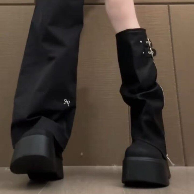 六点大叔厚底两穿美拉德骑士靴女秋冬新款小个子增高过膝长筒靴子