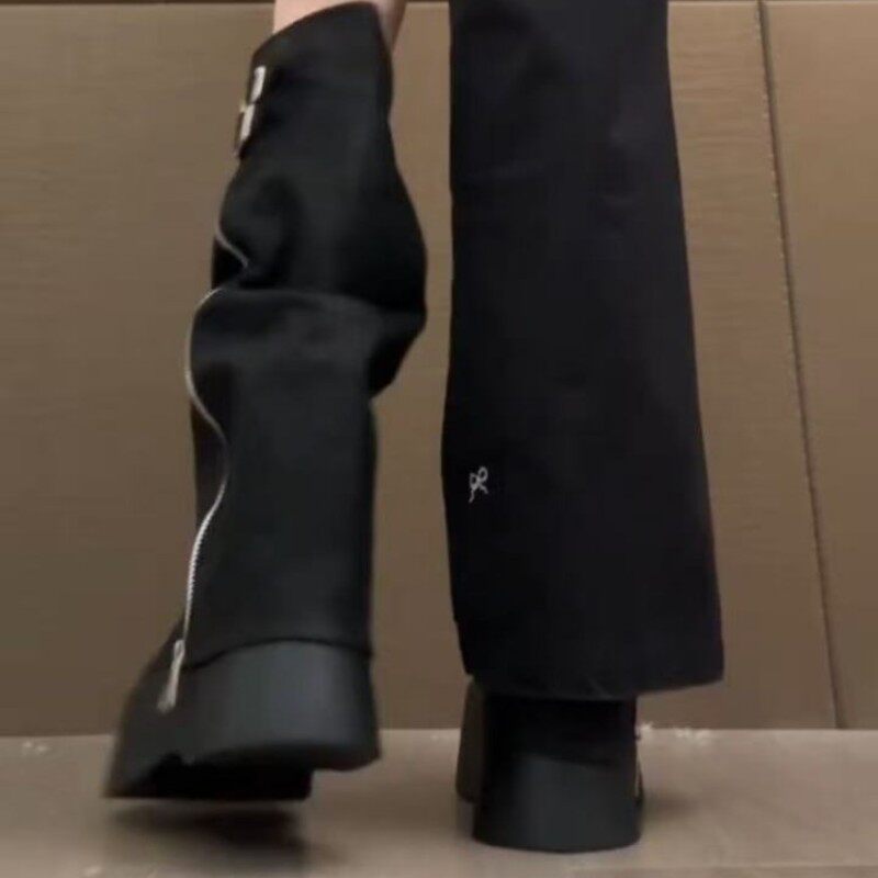 大头裤管靴女甜堆堆靴厚底西部靴长靴高筒骑士靴子内增高短筒春秋