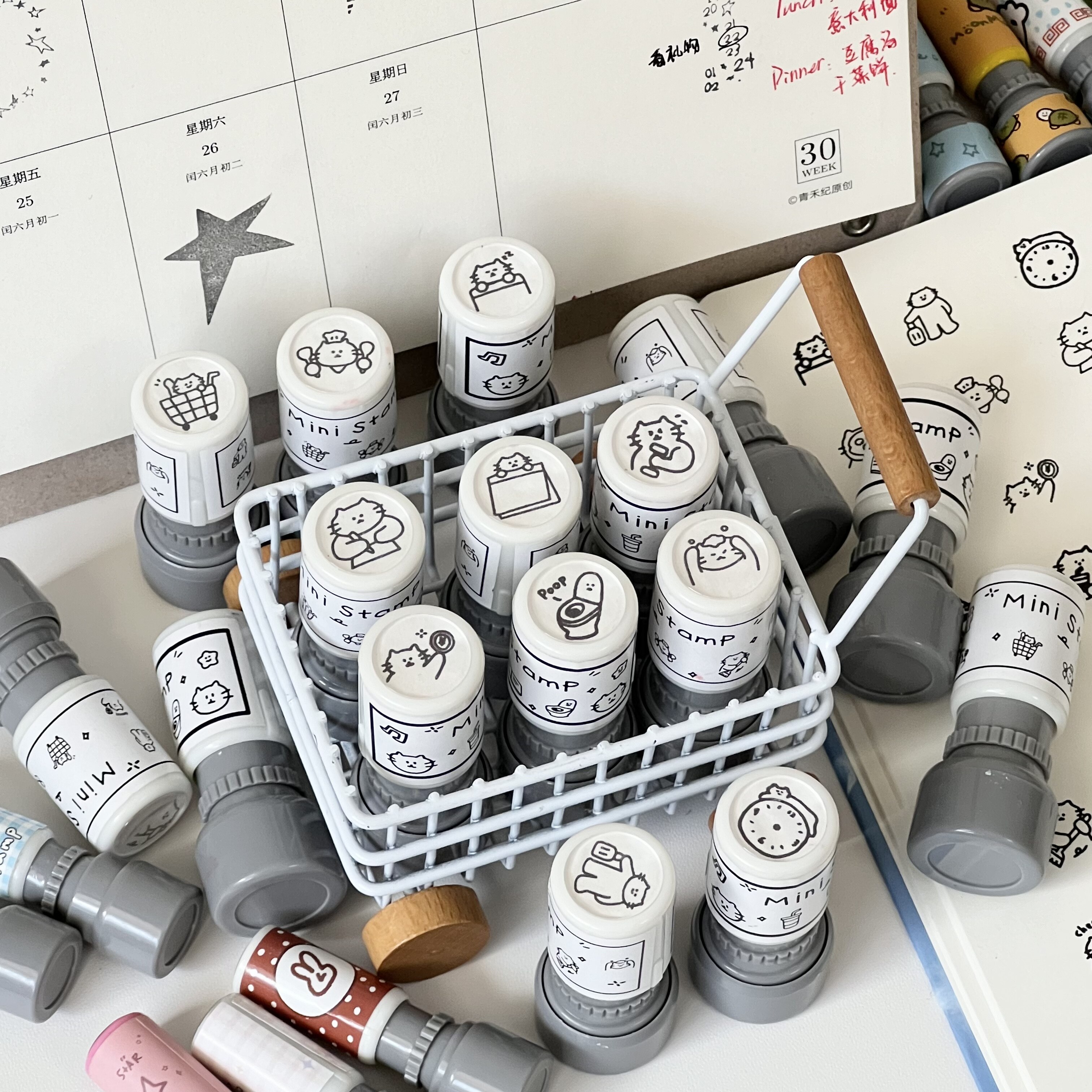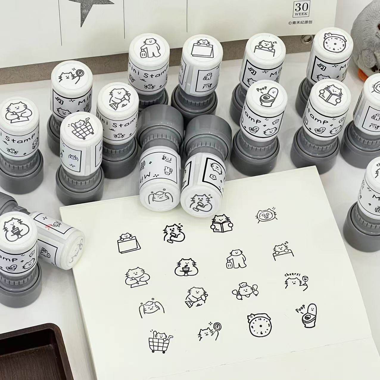 日系迷你猫咪日常按压式光敏印章学生打卡日程本手帐装饰diy素材