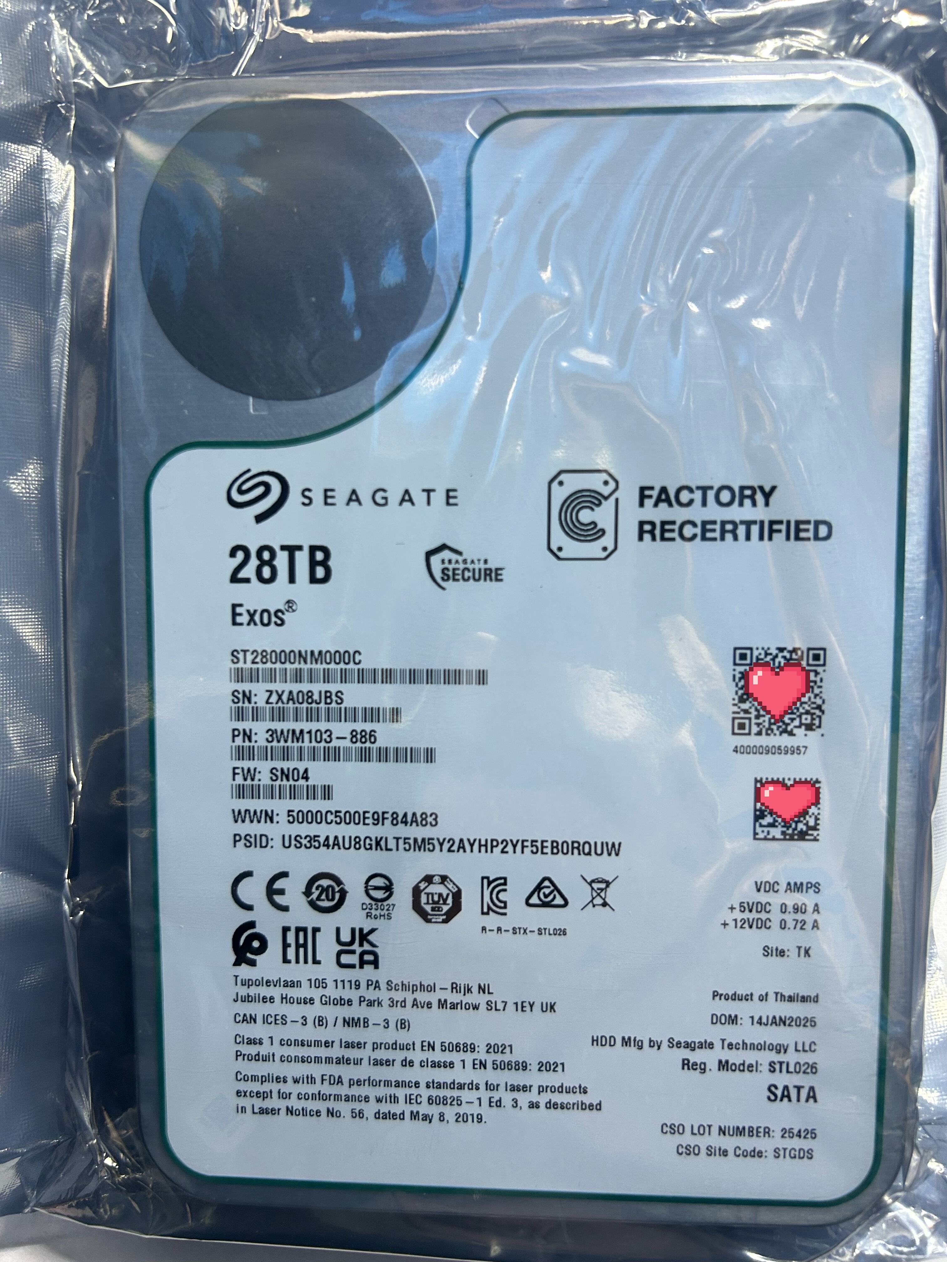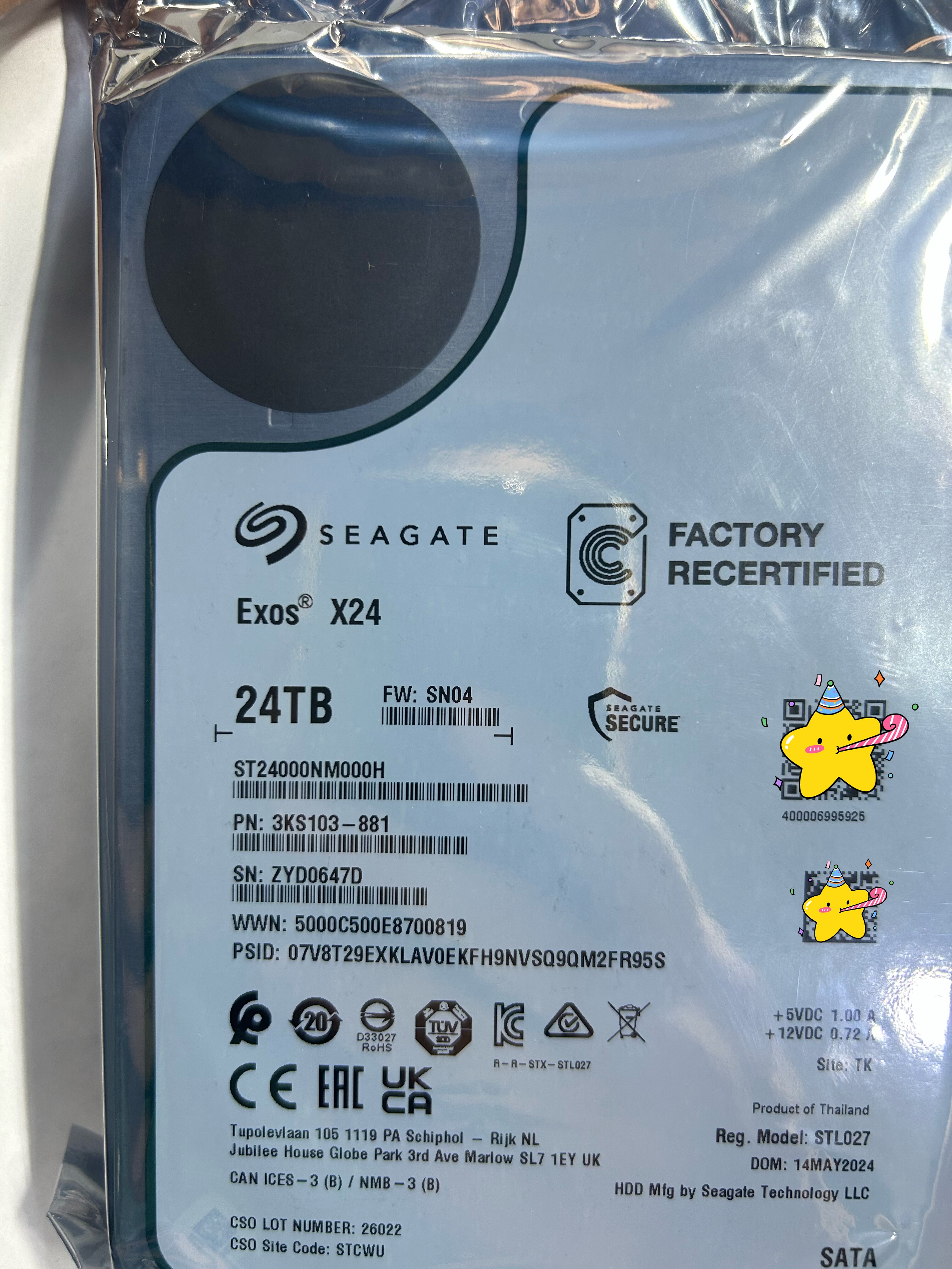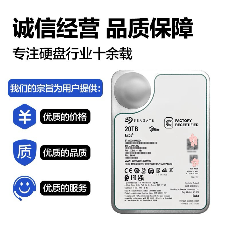 希捷20T 24T 28T硬盘官换全新原装盘ST24000NM000H ST28000NM002C