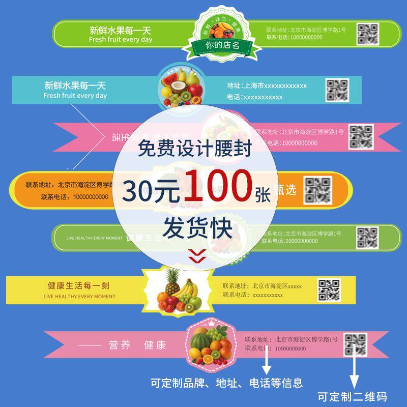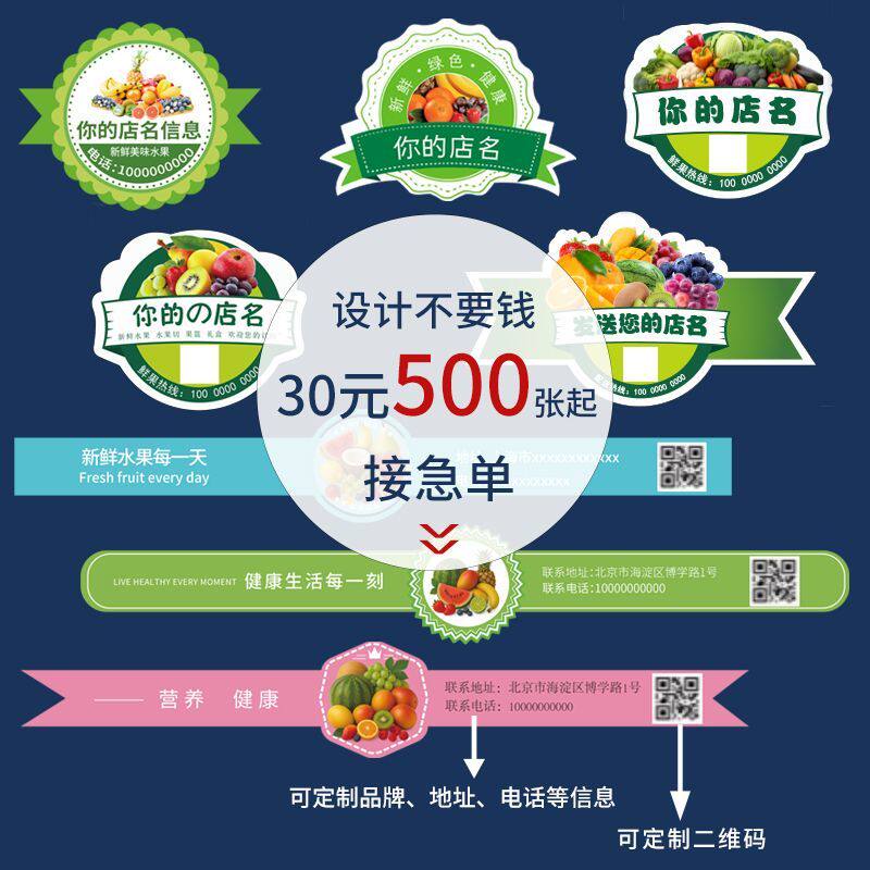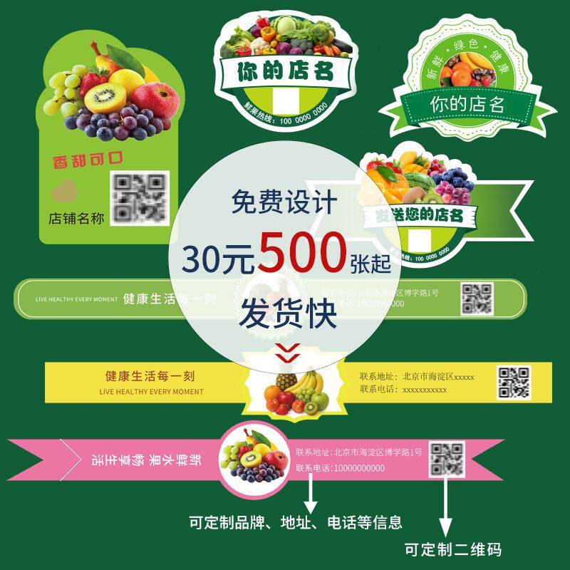 凌龙定制水果标签超市蔬菜贴纸标签不干胶通用樱桃西瓜鲜果切果盘腰封贴纸定做水果店果蔬不干胶店名二维码