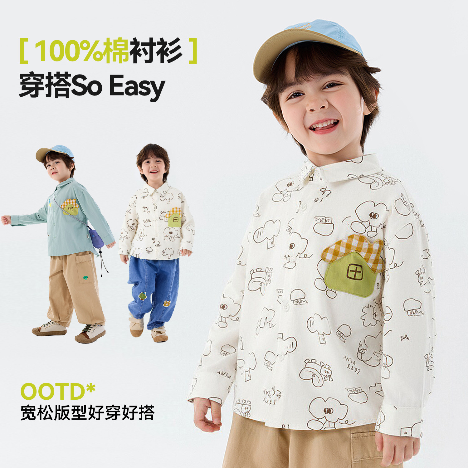 【100%棉】嘟嘟家儿童衬衫男童上衣纯棉女童衣服洋气宝宝童装春秋