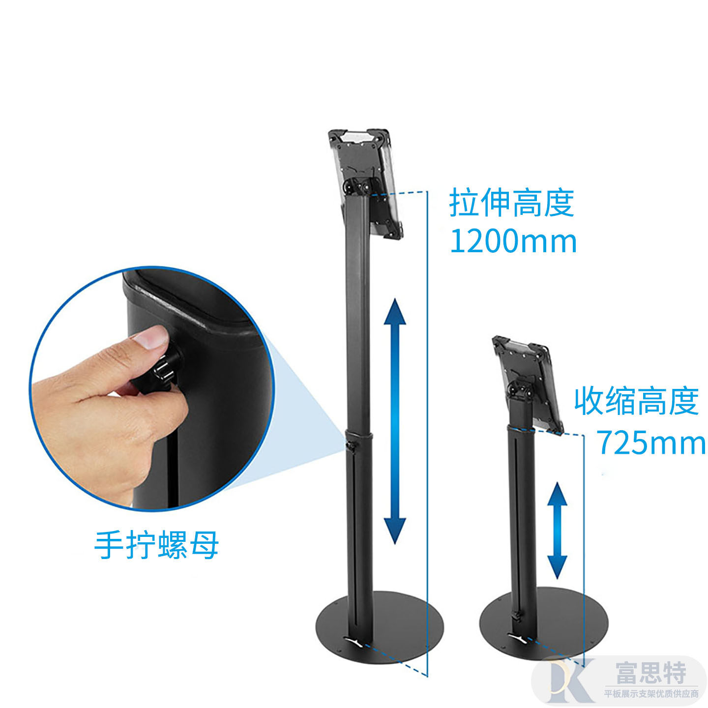 餐厅超市健身商业展示展览伸缩金属Pad落地Kiosk防盗vesa平板支架