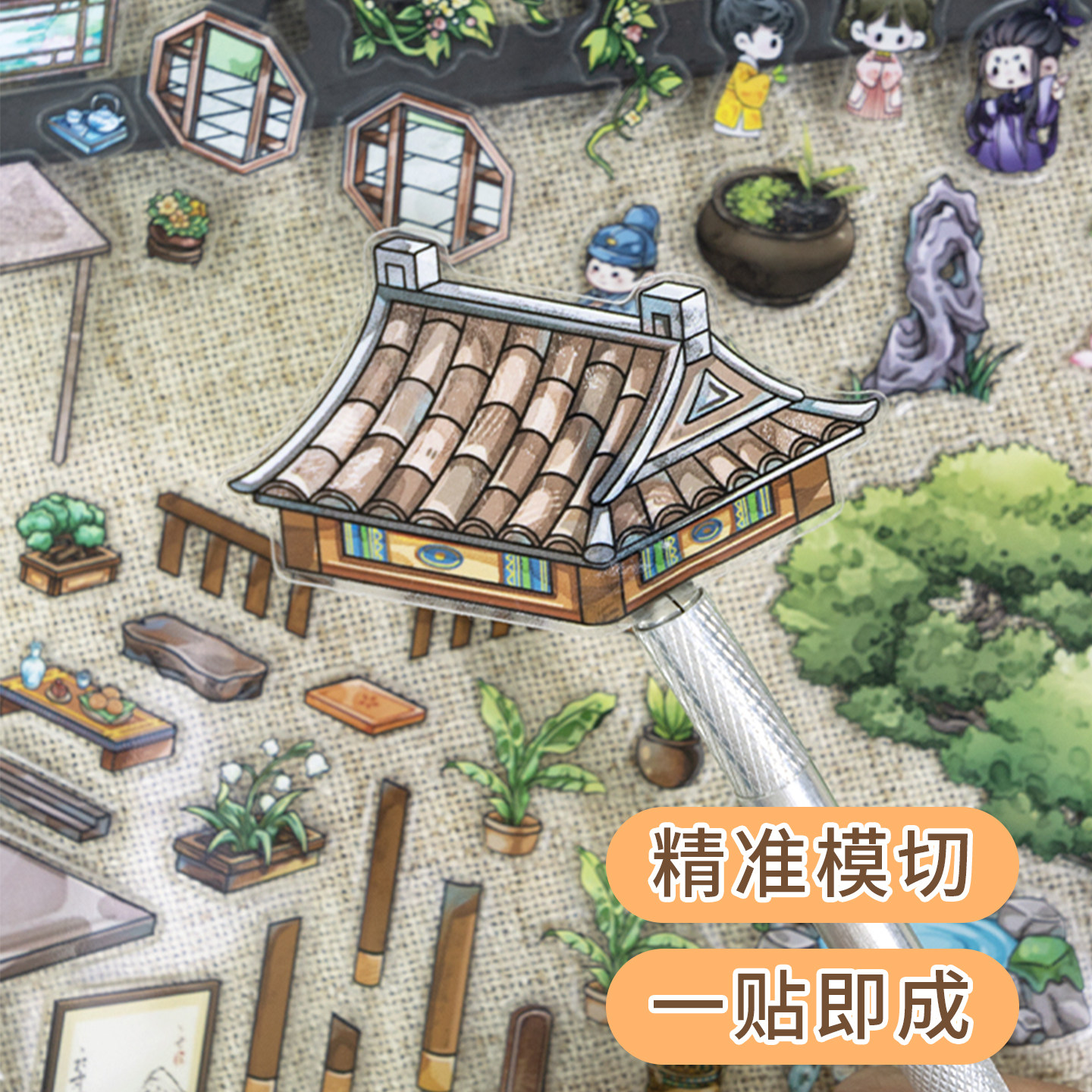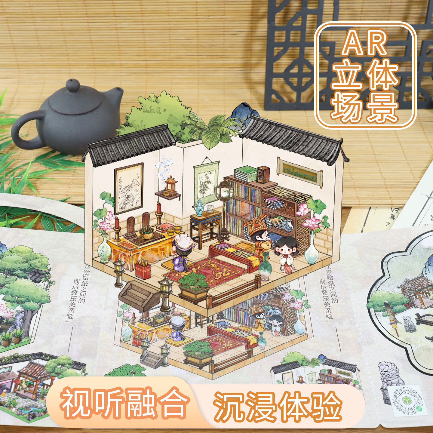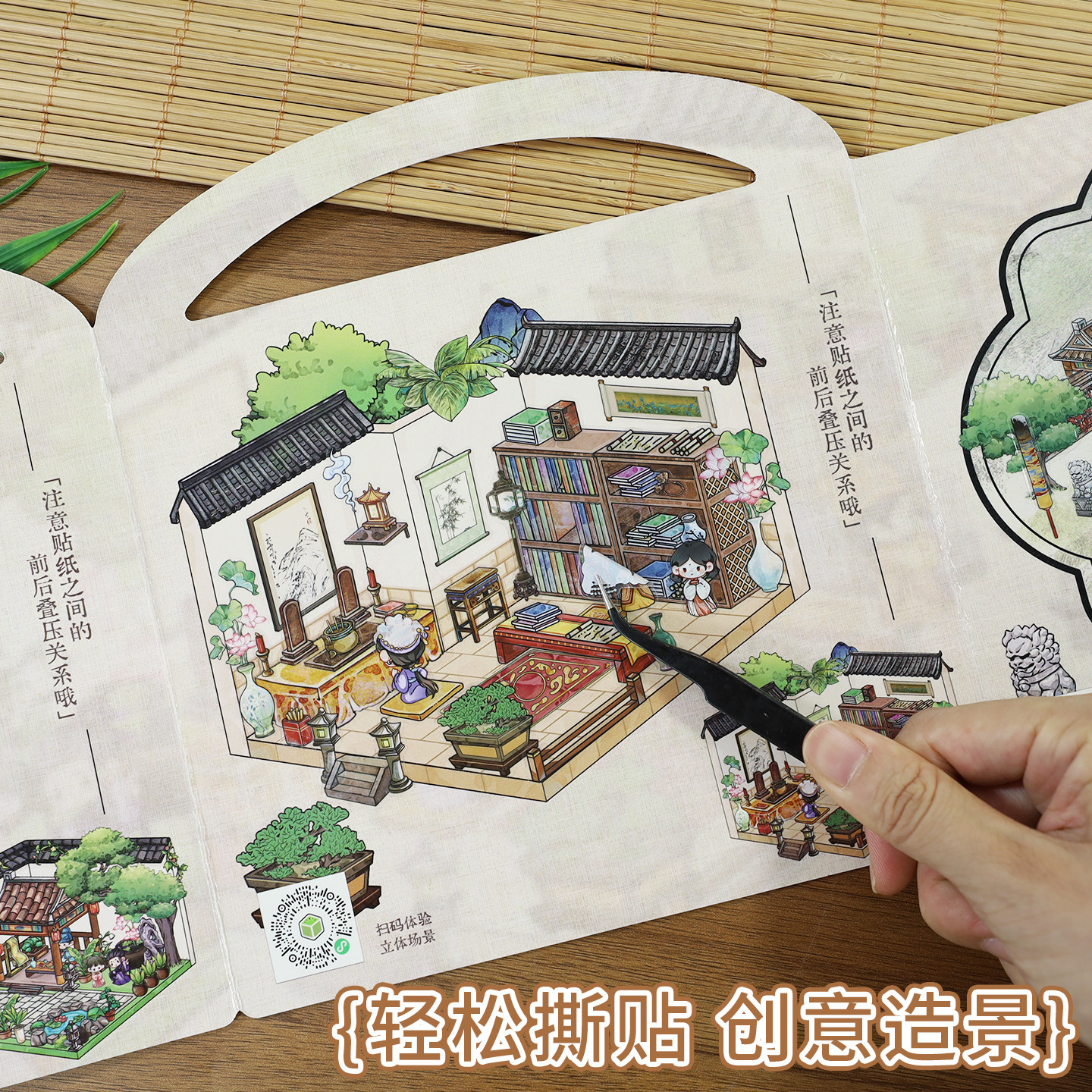 古风造景贴纸微缩场景沉浸式儿童拼图免裁剪AR互动启蒙早教专注力培养手工diy男孩玩具国风贴贴画
