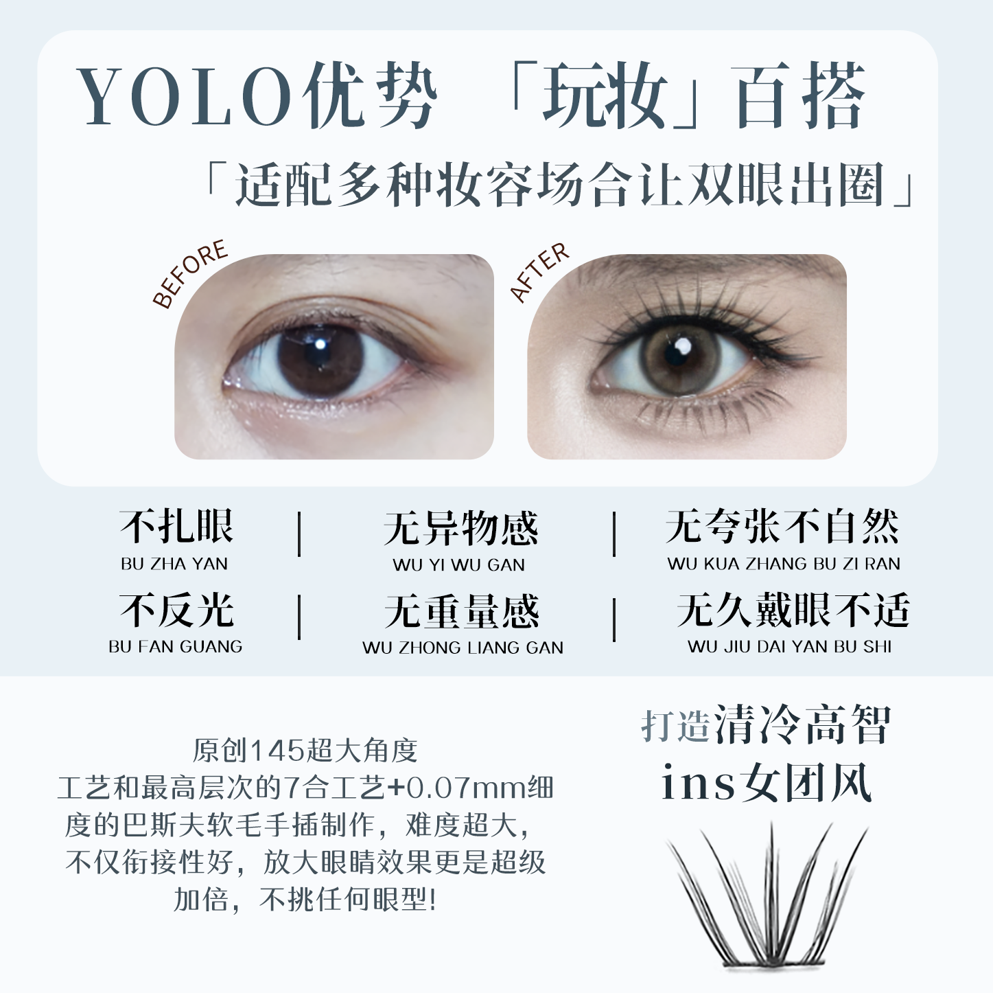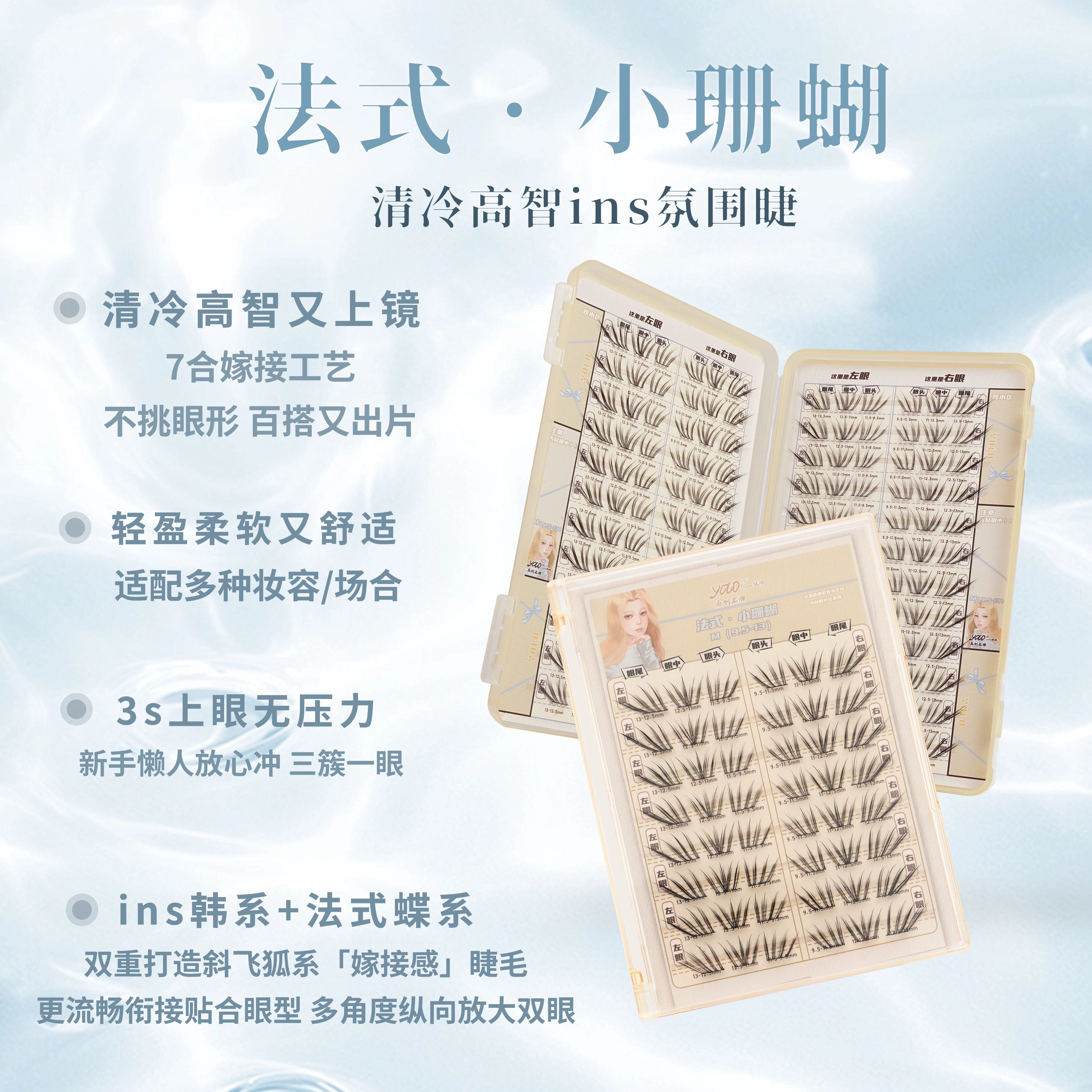 YOLO摇一夏法式小珊蝴假睫毛清冷韩系ins自然浓密单簇仿真小珊瑚