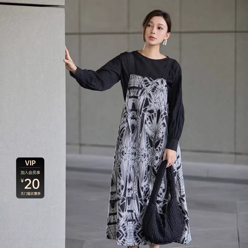 【裙子清仓99元起】半练带胸垫连衣裙秋季打底背心裙黑白吊带裙子