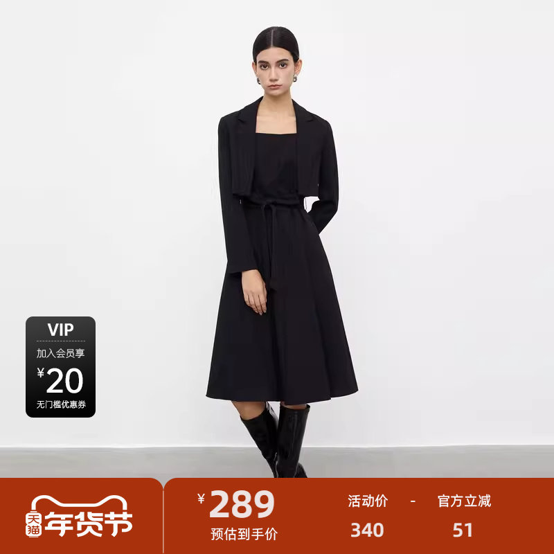 sdeer圣迪奥女装秋OL风西装领收腰外套吊带裙套装S233Z1410