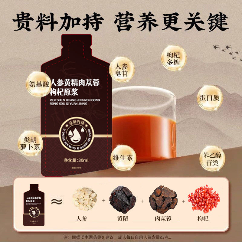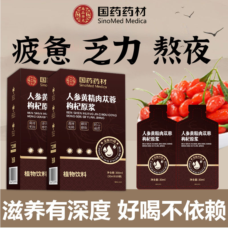 国药药材人参黄精肉苁蓉枸杞素原浆四重滋养鲜榨100%男性疲惫乏力