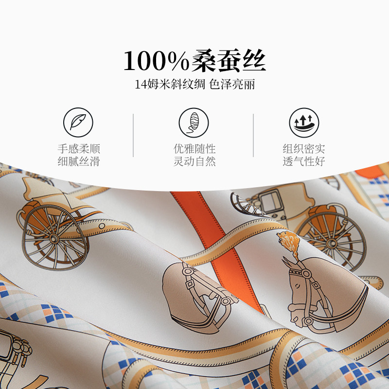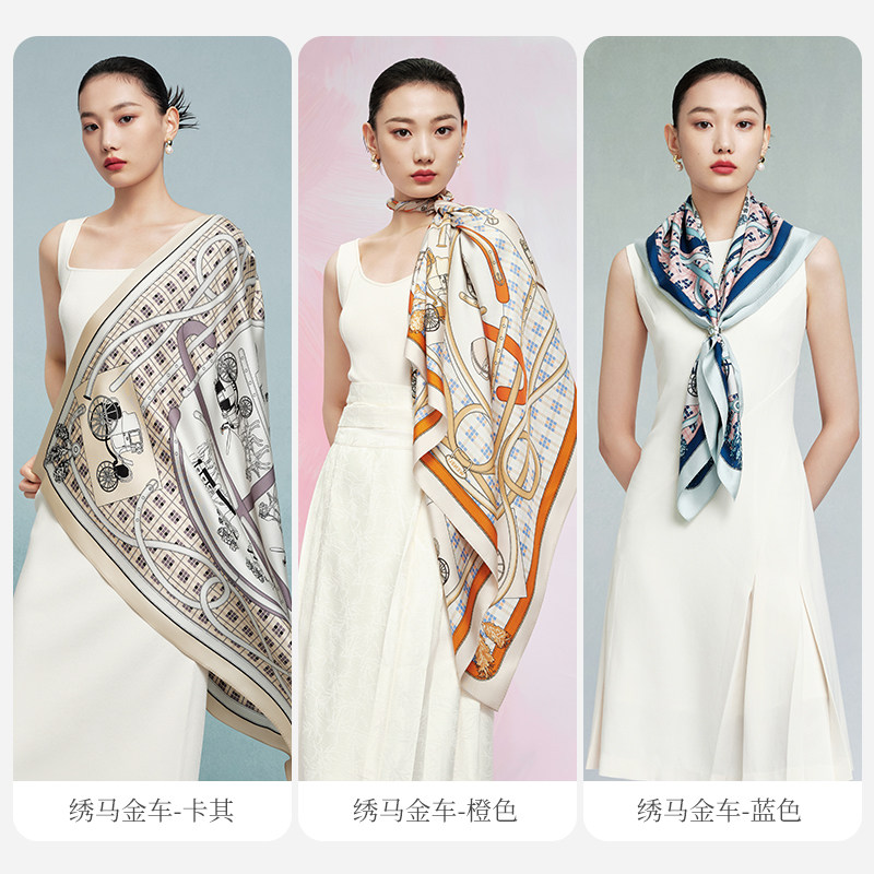 万事利新品100%桑蚕丝真丝丝巾欧式链条印花方巾88cm绣马金车