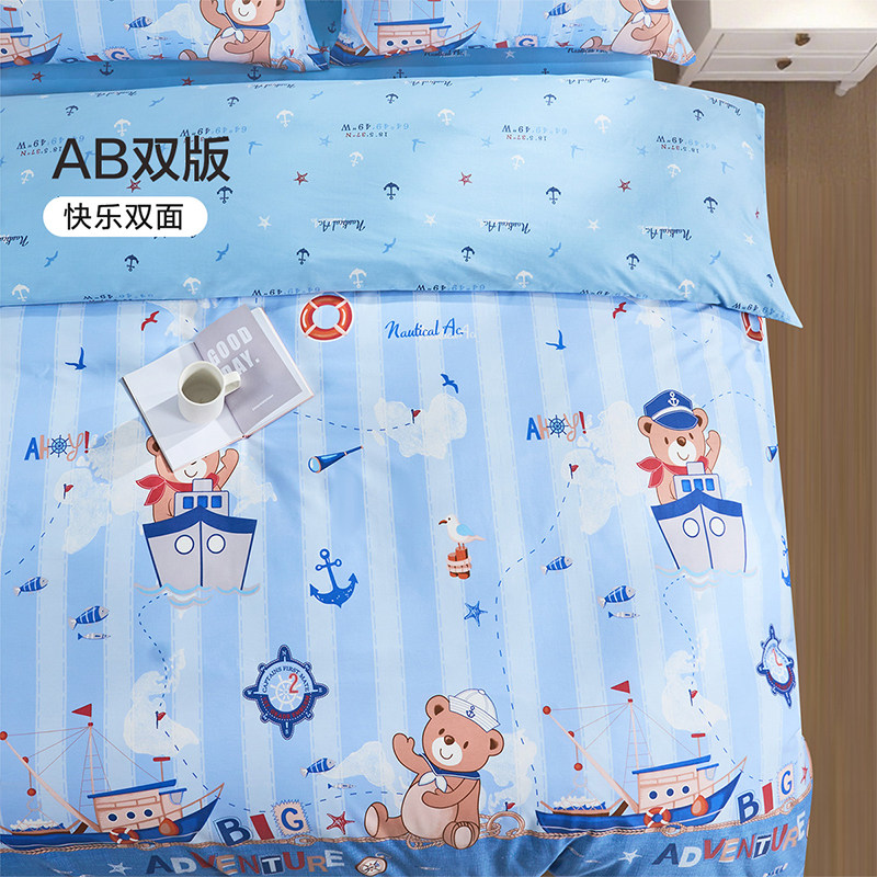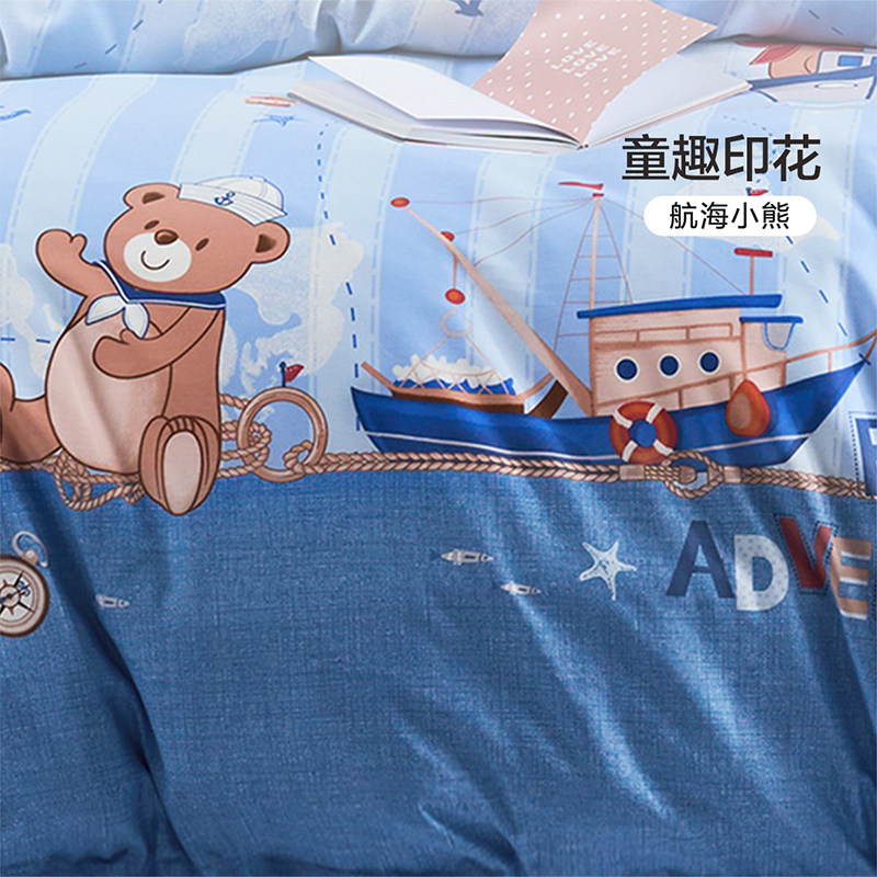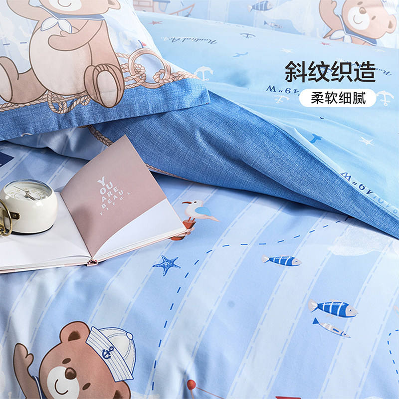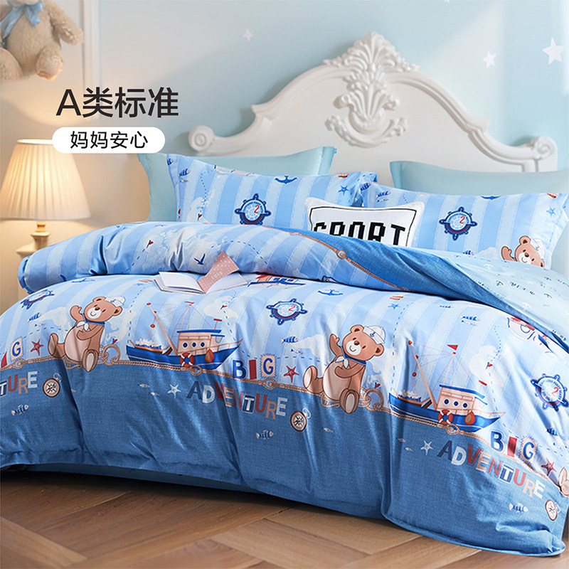 富安娜家纺四件套儿童小学生宿舍纯棉被套全棉床单防尘被罩男A类