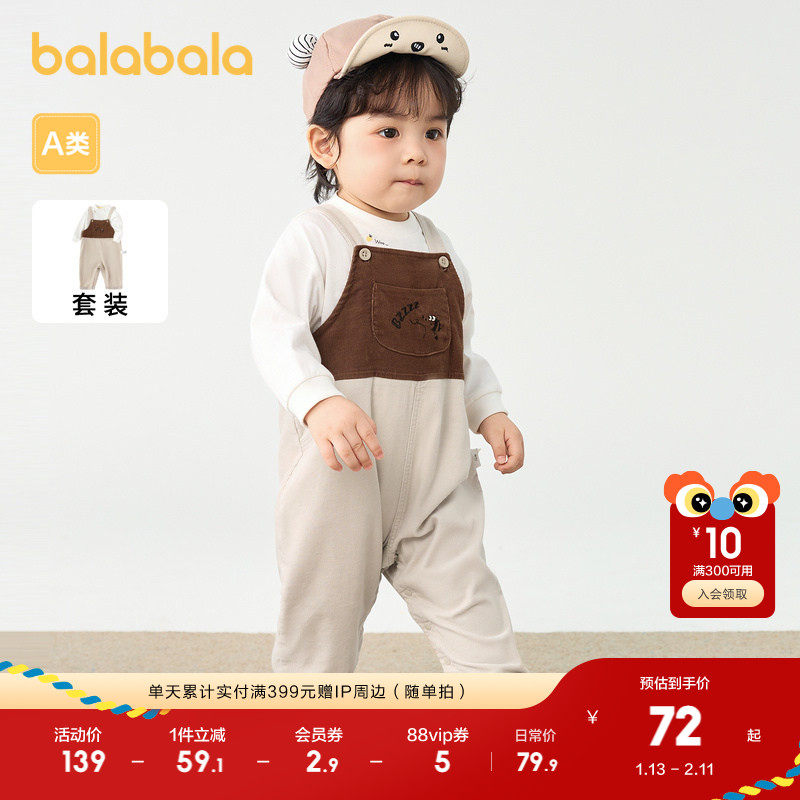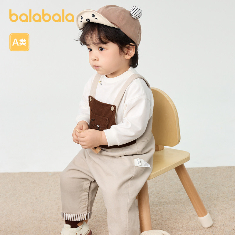 巴拉巴拉宝宝秋装婴儿长袖套装背带裤两件套新款