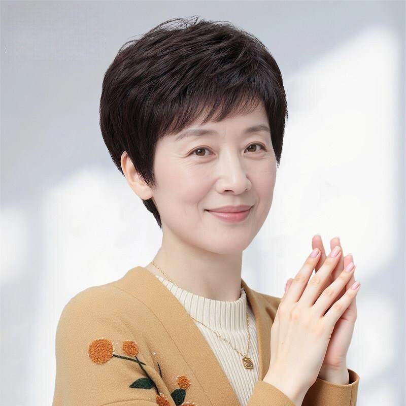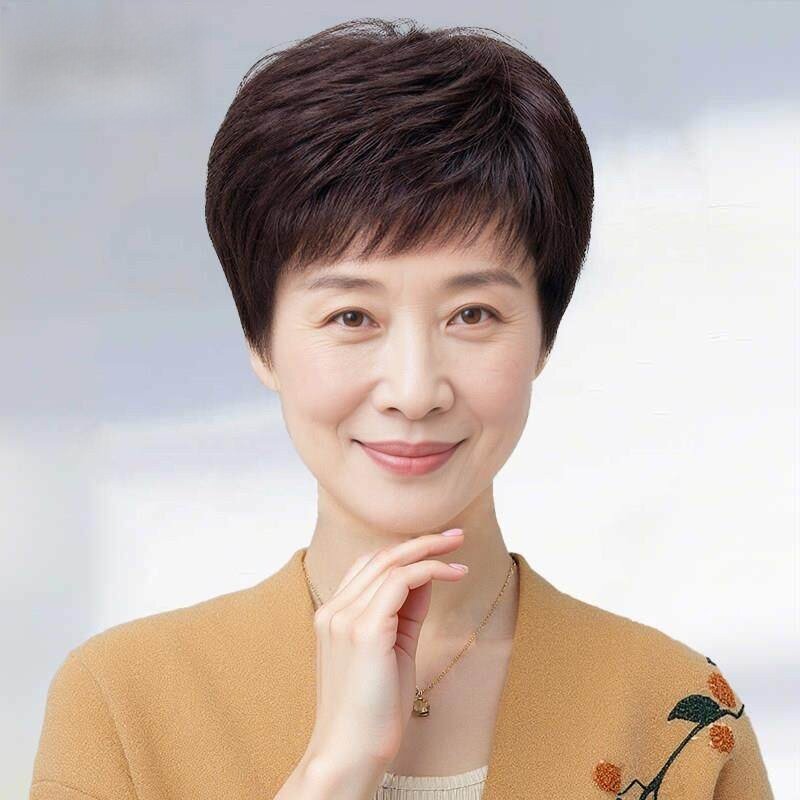 假发女全头套短发自然真发卷发真人发丝假发套中老年女士妈妈款型