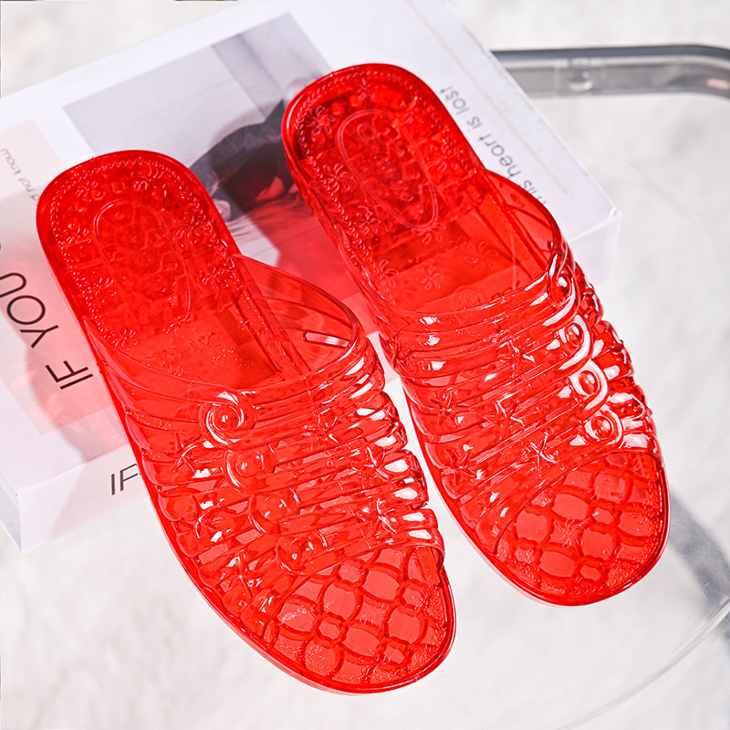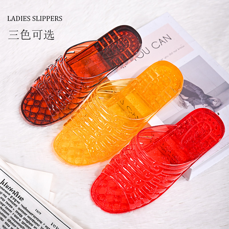 2025水晶一字拖鞋女加厚平底防臭妈妈中老年拖鞋塑料透明户外凉拖