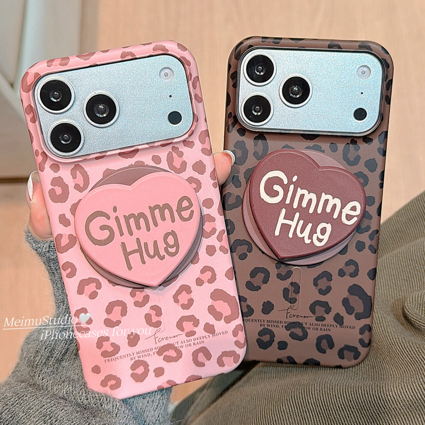 美牧甜酷辣妹豹纹爱心磁吸支架适用苹果17手机壳iphone16promax新款15pro菲林16pro小众女15pm高级感17pm半包