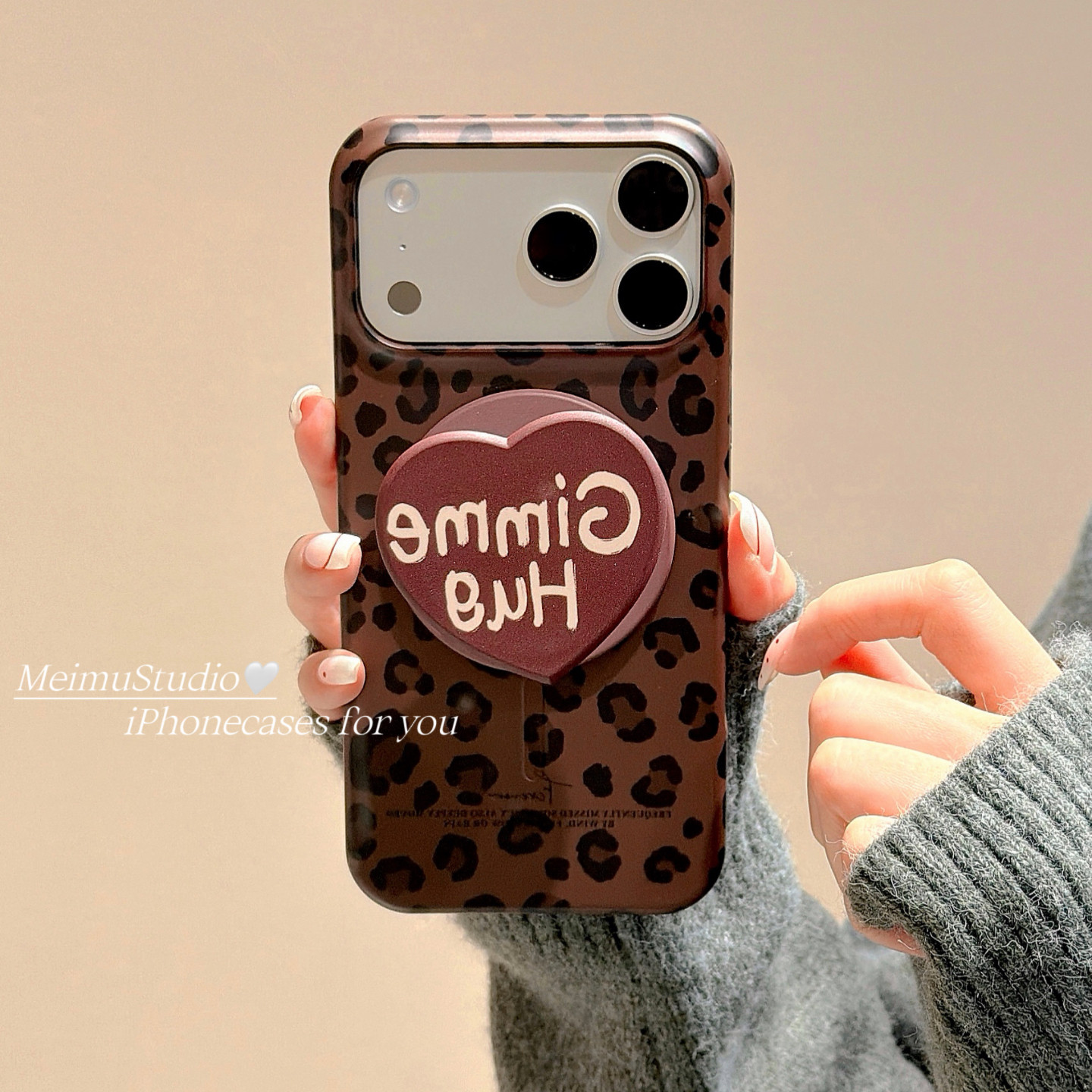 甜酷豹纹爱心磁吸支架适用苹果菲林手机壳