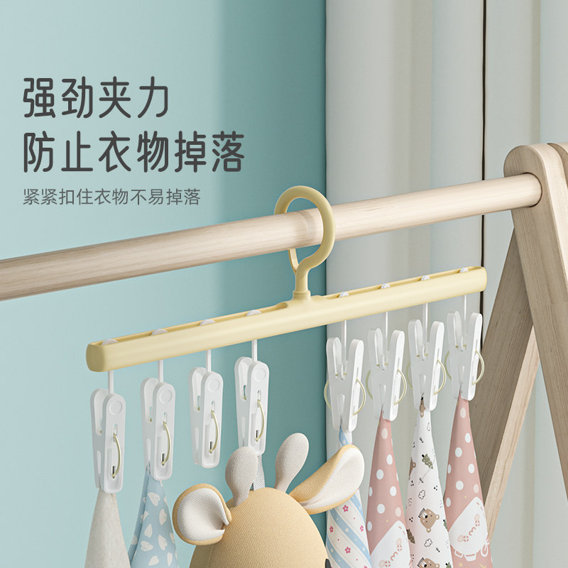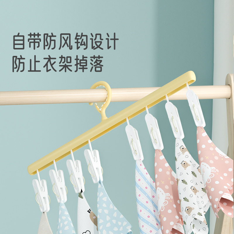婴儿衣架晾晒宝宝专用新生儿儿童袜子神器家用阳台挂衣多夹子收纳
