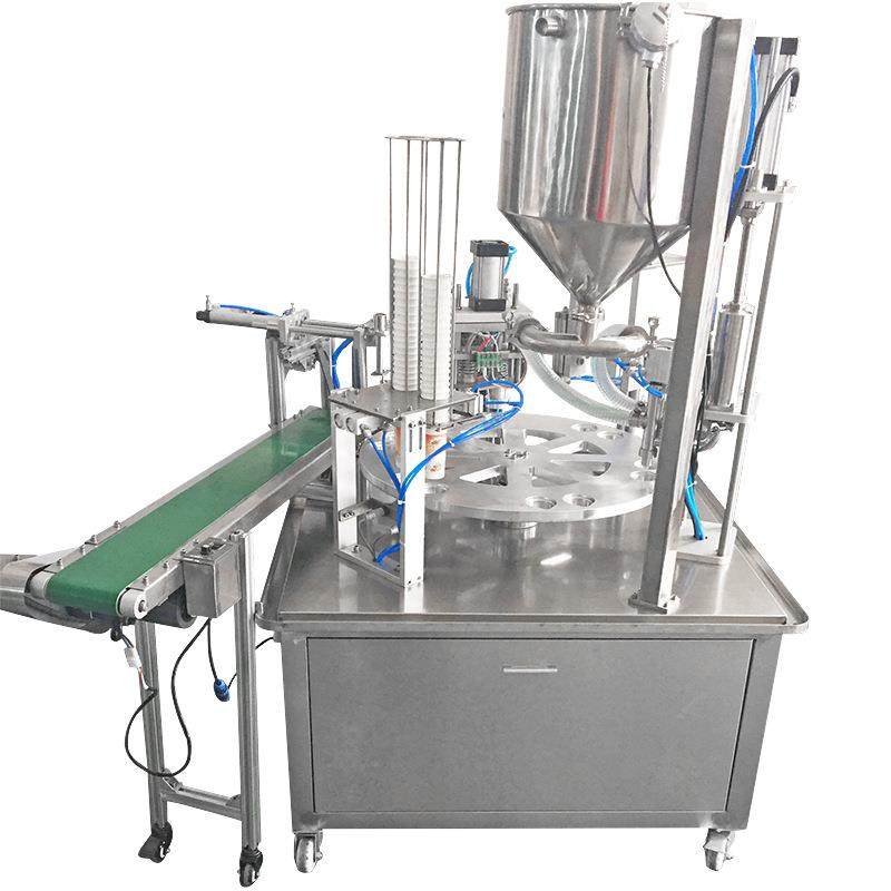 厂家直供圆盘一出二不锈钢酸奶液体全自动灌装封口机打印生产日期